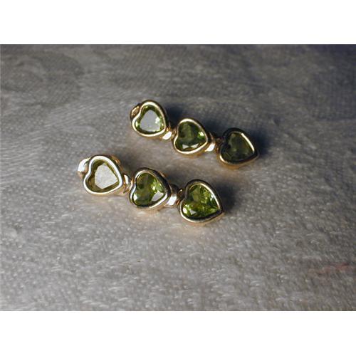 </font></strong>You are looking at a pair of estate 14K yellow gold peridot drop earrings. This lovely set features 3 heart shaped natural peridots in each piece measuring 5 mm by 5 mm. Each earring measures almost 1 inch long by .25 of an inch wide. The pair weighs 4.2 grams. They are in mint condition.</font>
