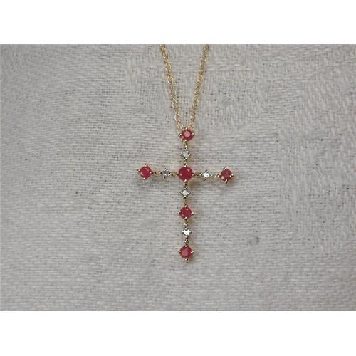 <tr><td>Title:Estate 14K YG Gold Ruby Diamond Cross Necklace</td></tr>