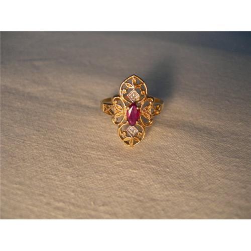<tr><td>Title:Estate 14K YG Gold Ruby Diamond Filigree Ring</td></tr>
