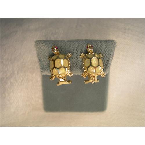 <tr><td>Title:Estate 14K YG Gold Ruby Opal Turtle Earrings</td></tr>