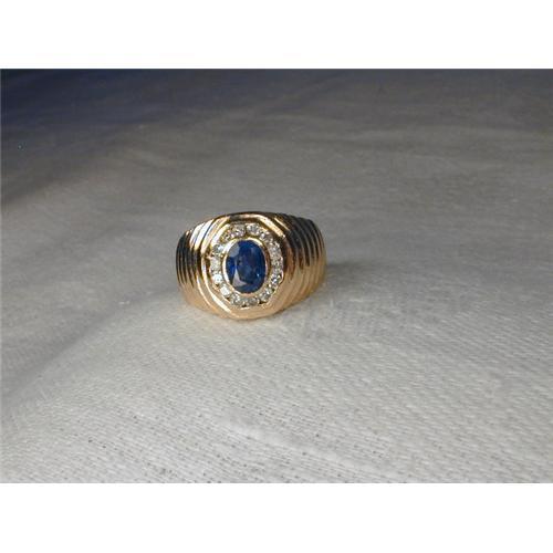 <tr><td>Title:Estate 14K YG Gold Sapphire Diamond Mens Ring</td></tr>