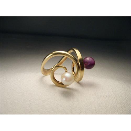 <tr><td>Title:Estate 14K YG Pearl Amethyst Designer Ring</td></tr>