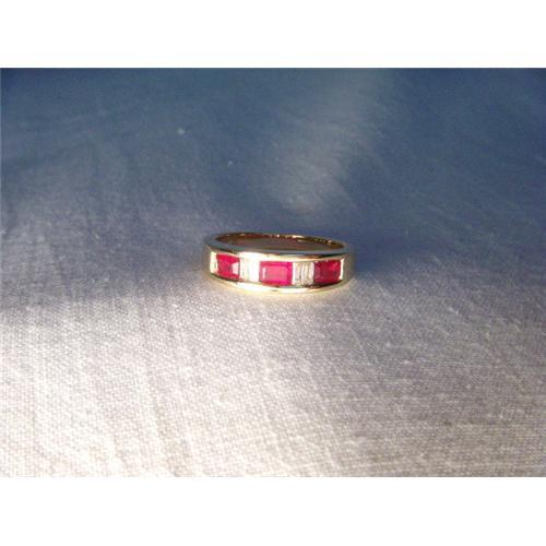 <tr><td>Title:Estate 14K YG Ruby Baguette Diamond Band Ring</td></tr>