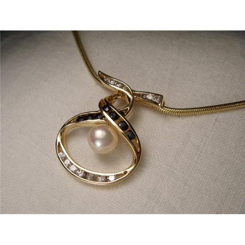 <tr><td>Title:Estate 14K YG Sapphire Diamond Pearl Pendant</td></tr>