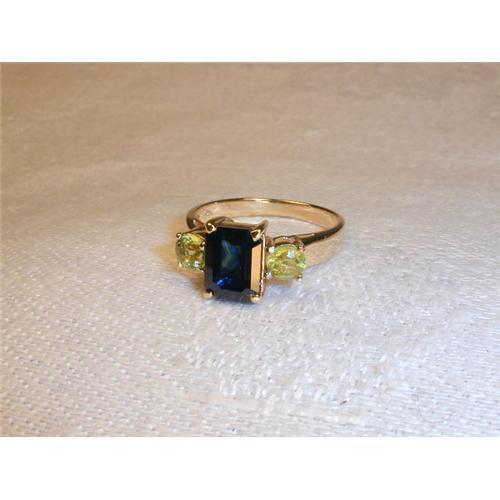 <tr><td>Title:Estate 14K YG Sapphire Peridot Tri-Stone Ring</td></tr>