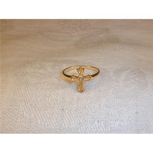 <tr><td>Title:Estate 14K YG Yellow Gold Diamond Cross Ring</td></tr>