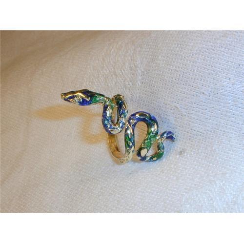 You are looking at a rare estate 14K solid yellow gold enameled snake ring. It is decorated by blue and green enamel throughout the body of the snake. The ring is a size 8.5 and is adjustable to size 9. Sizing is available. The piece weighs 6.9 grams. It is in mint condition.