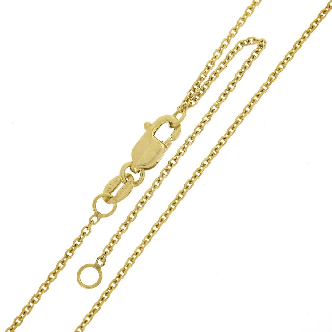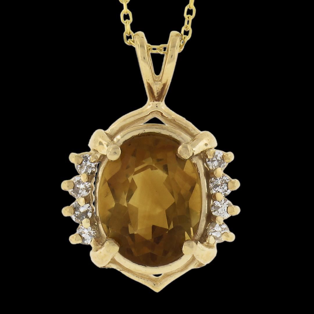 A solid 14k yellow gold pendant necklace, featuring 1 oval cut natural citrine (10.1x8.1mm), and 8 natural diamonds (H/I - I1/I2 ; 0.10ctw). Adjustable 16 & 18 inch cable link chain, 3.66 grams total weight, pendant measures 20.7x14.1mm.