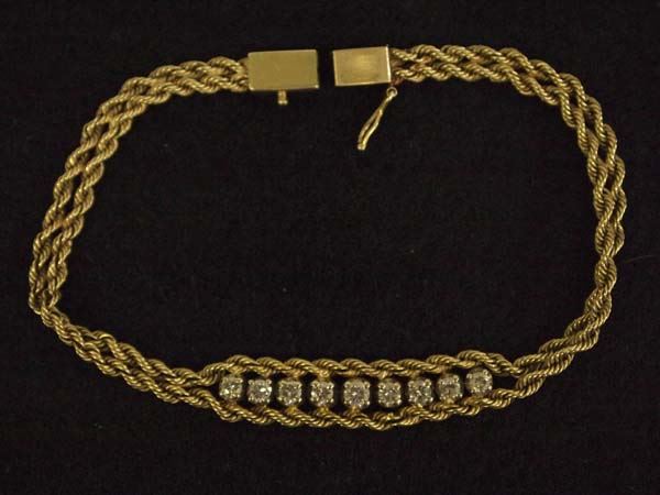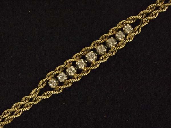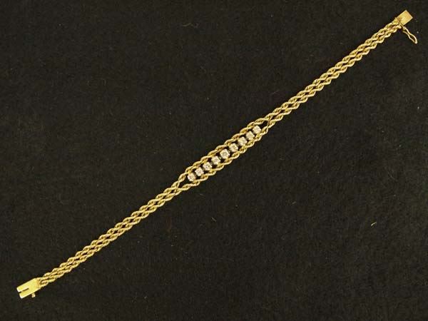 From the Posey Estate we have a Gorgeous 14Kt Gold and Diamond Bracelet, measures 7.5''L x 3/8''W, 9 Diamonds, stamped 14K, 8.8g in total wt.