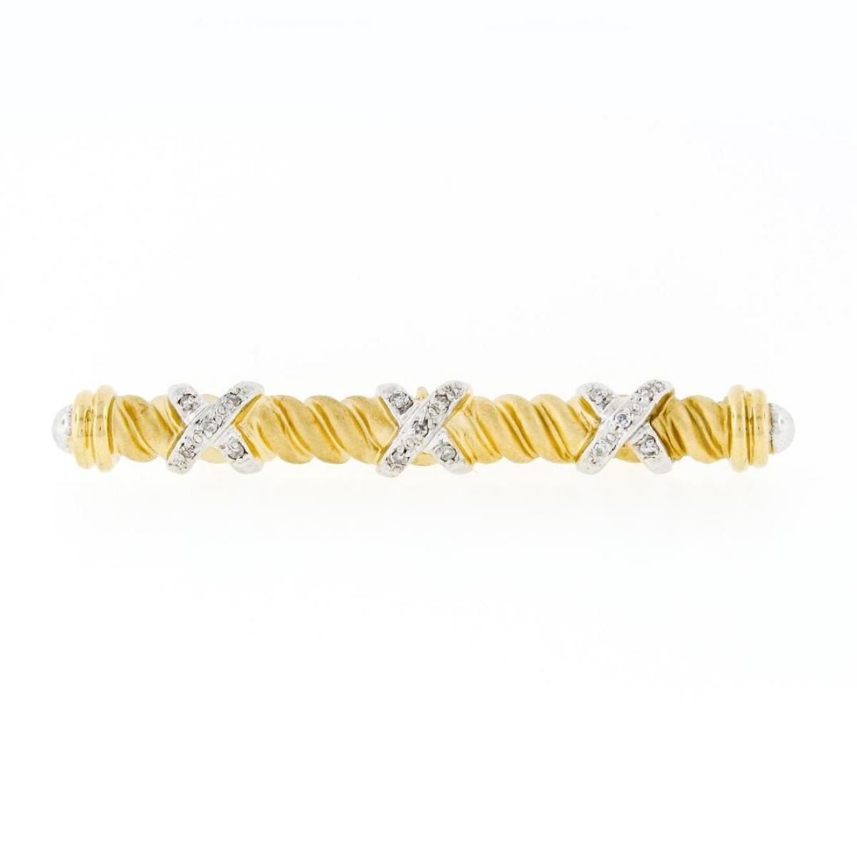 Estate 14k Gold Single Cut Diamond "X" Figure Satin Twisted Cable Bar Pin Brooch