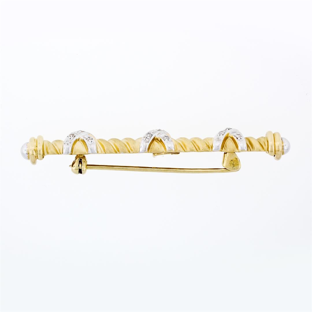 Estate 14k Gold Single Cut Diamond "X" Figure Satin Twisted Cable Bar Pin Brooch