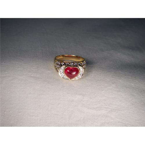 <tr><td>Title:Estate 18K Filigree Ruby Diamond Heart Ring</td></tr>