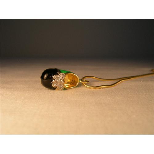 <tr><td>Title:Estate 18K Gold Enamel Diamond Baby Shoe Charm</td></tr>