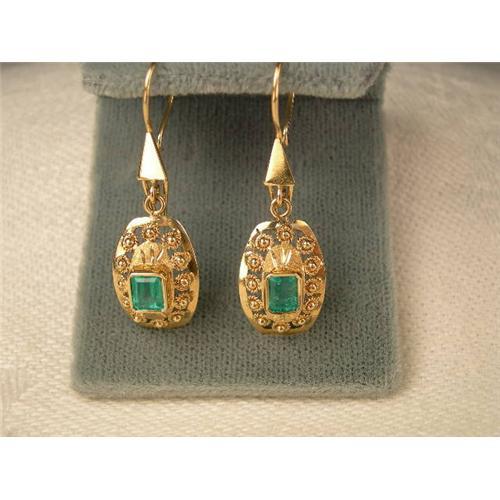 <tr><td>Title:Estate 18K Gold Filigree Emerald Drop Earrings</td></tr>