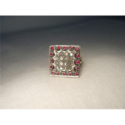<tr><td>Title:Estate 18K Pink Gold Diamond Ruby Filigree Ring</td></tr>