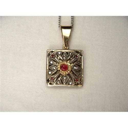 <tr><td>Title:Estate 18K Pink Rose Gold Diamond Ruby Pendant</td></tr>