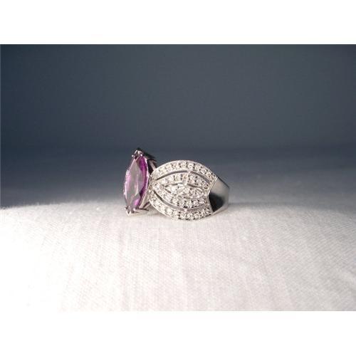 <tr><td>Title:Estate 18K WG Diamond Amethyst Filigree Ring</td></tr>