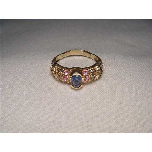 <tr><td>Title:Estate 18K YG Gold Multi-Color Sapphire Ring</td></tr>
