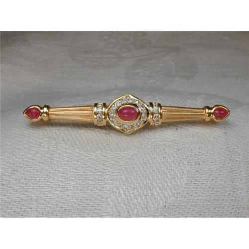 <tr><td>Title:Estate 18K YG Gold Ruby Diamond Brooch Bar Pin</td></tr>