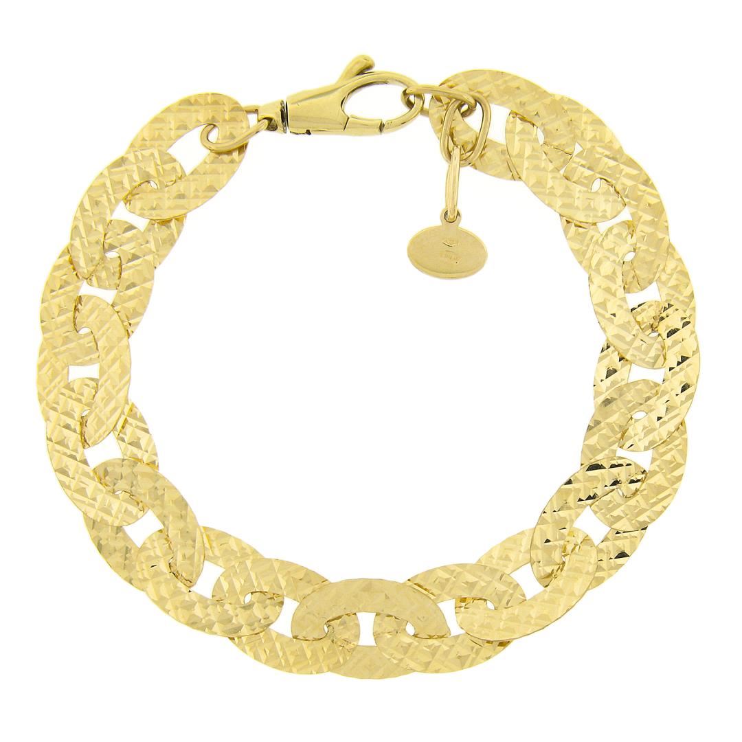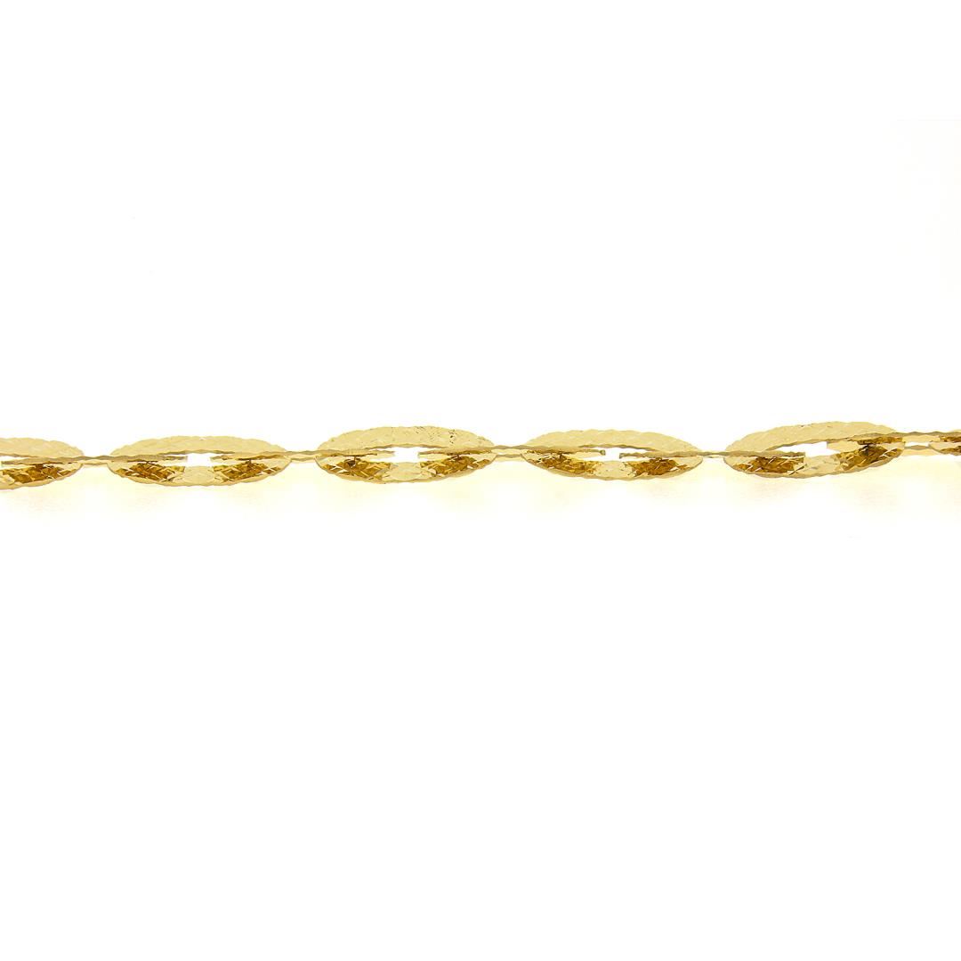 A solid 18k yellow gold oval link bracelet. It weighs a total of 9.71 grams, measures 10mm wide, and measures adjustable at 7, 7.25 & 7.5 inches in length.