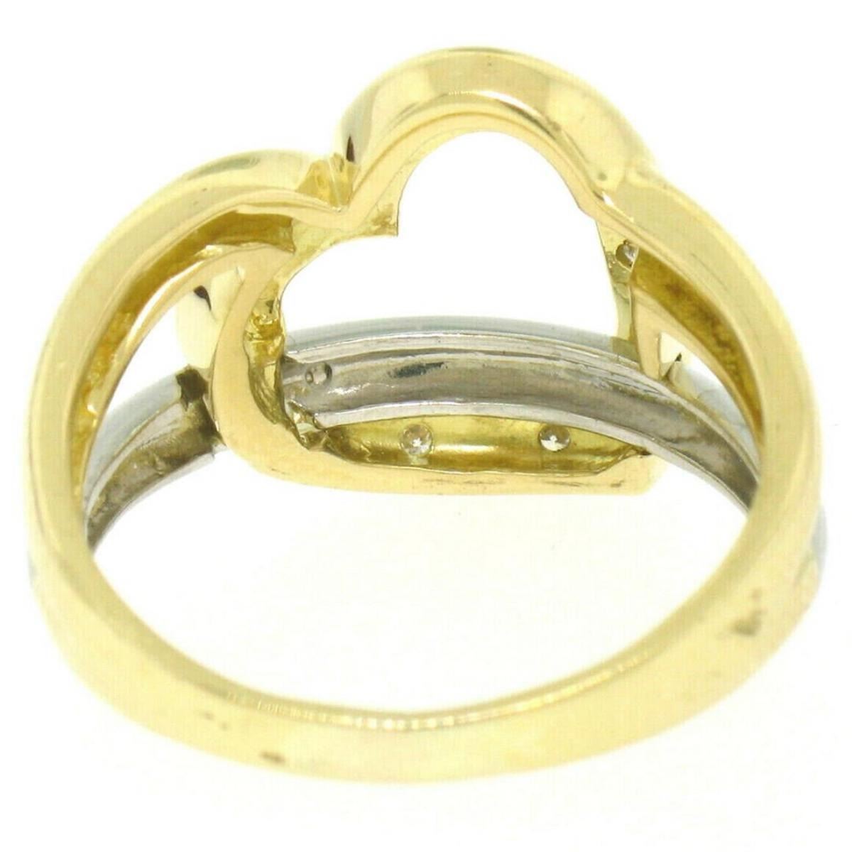 One Estate 18k Solid Yellow & White Gold 0.12ctw Diamond Open Heart Band Ring. Item Details: Material:   Solid 18k Yellow and White Gold , Weight:  6.80 Grams  , Stone:  (8) Natural Genuine Diamonds - Round Brilliant Cut - Burnish Set - H Color - SI1 Clarity - 0.12ctw (approx.), Width: 15.0mm, Height: 3.6mm rise off the finger, Size:  8.0 , Condition:  Estate piece. Excellent Condition!,