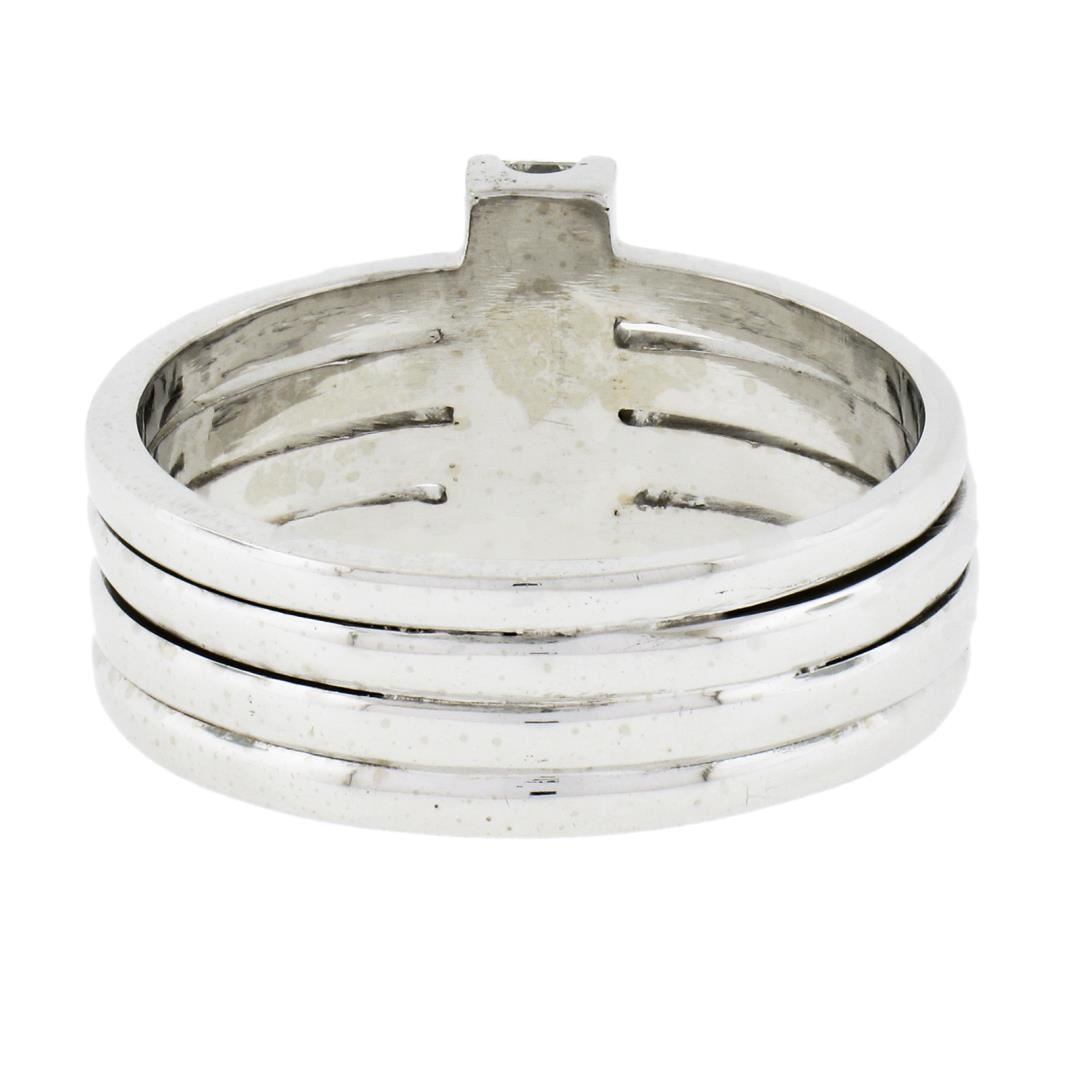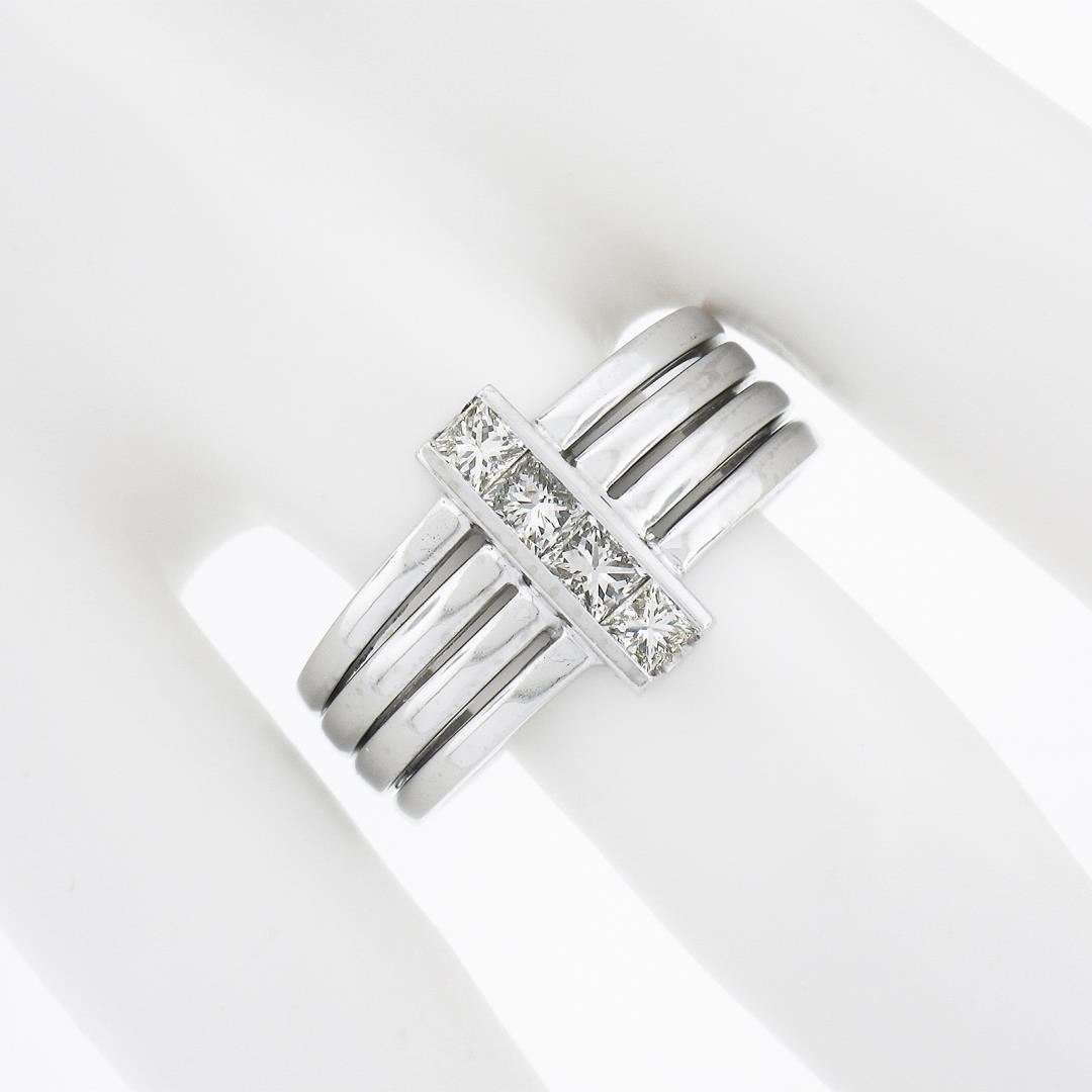 A solid 18k white gold 4 row ring, with 4 princess cut natural diamonds (H/I - VS2-SI1 ; 0.72ctw). The ring is size 10.0, weighs a total of 10.88 grams, and measures 12.8mm wide.