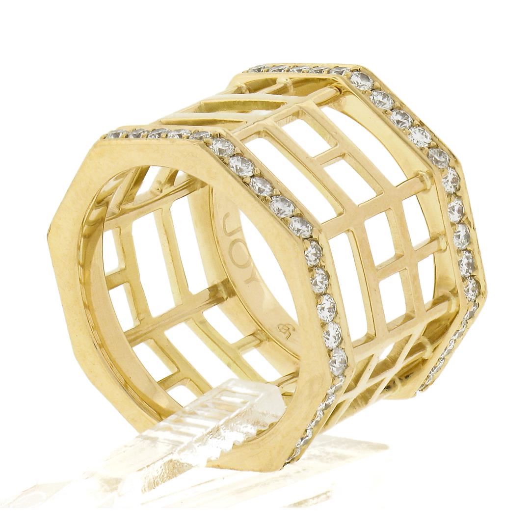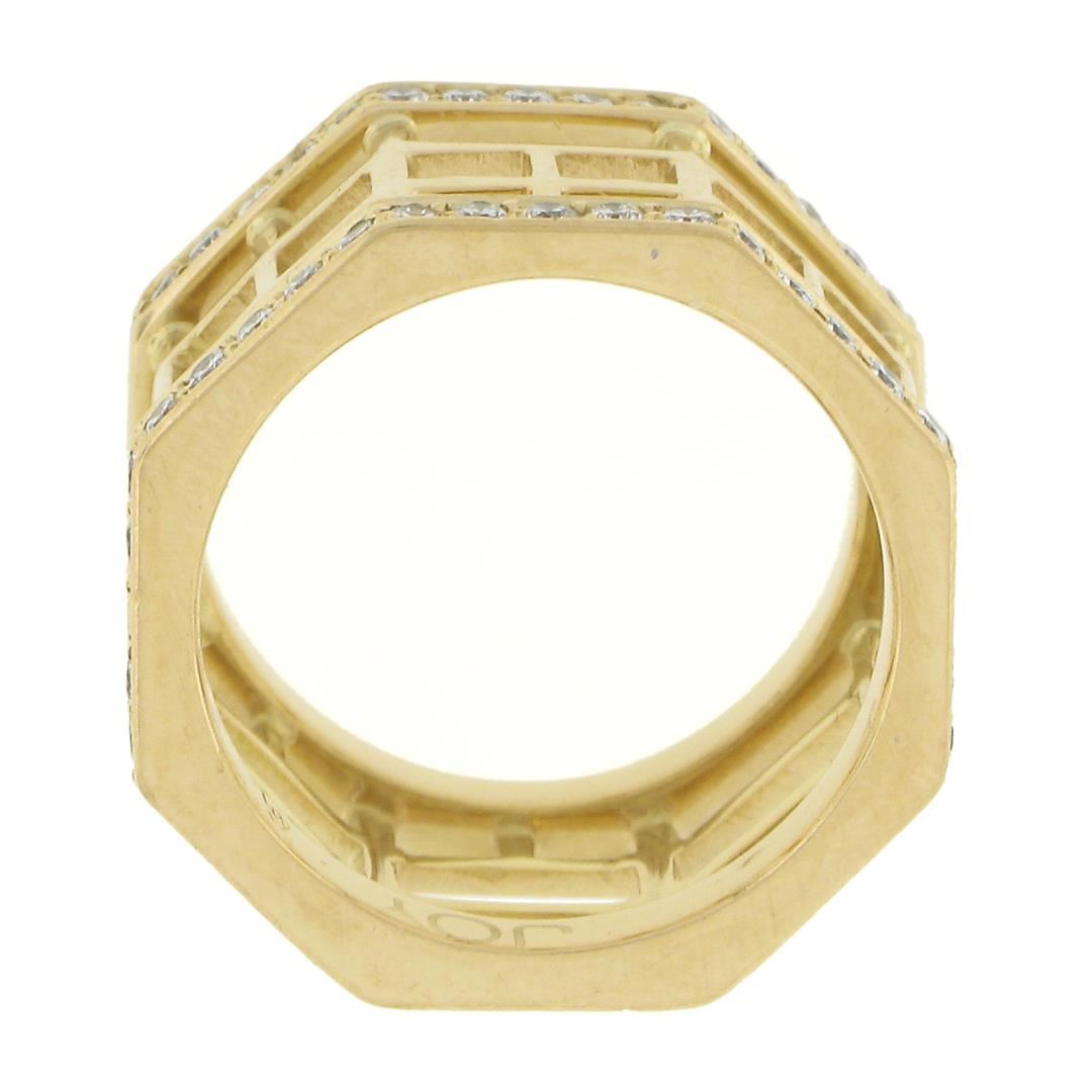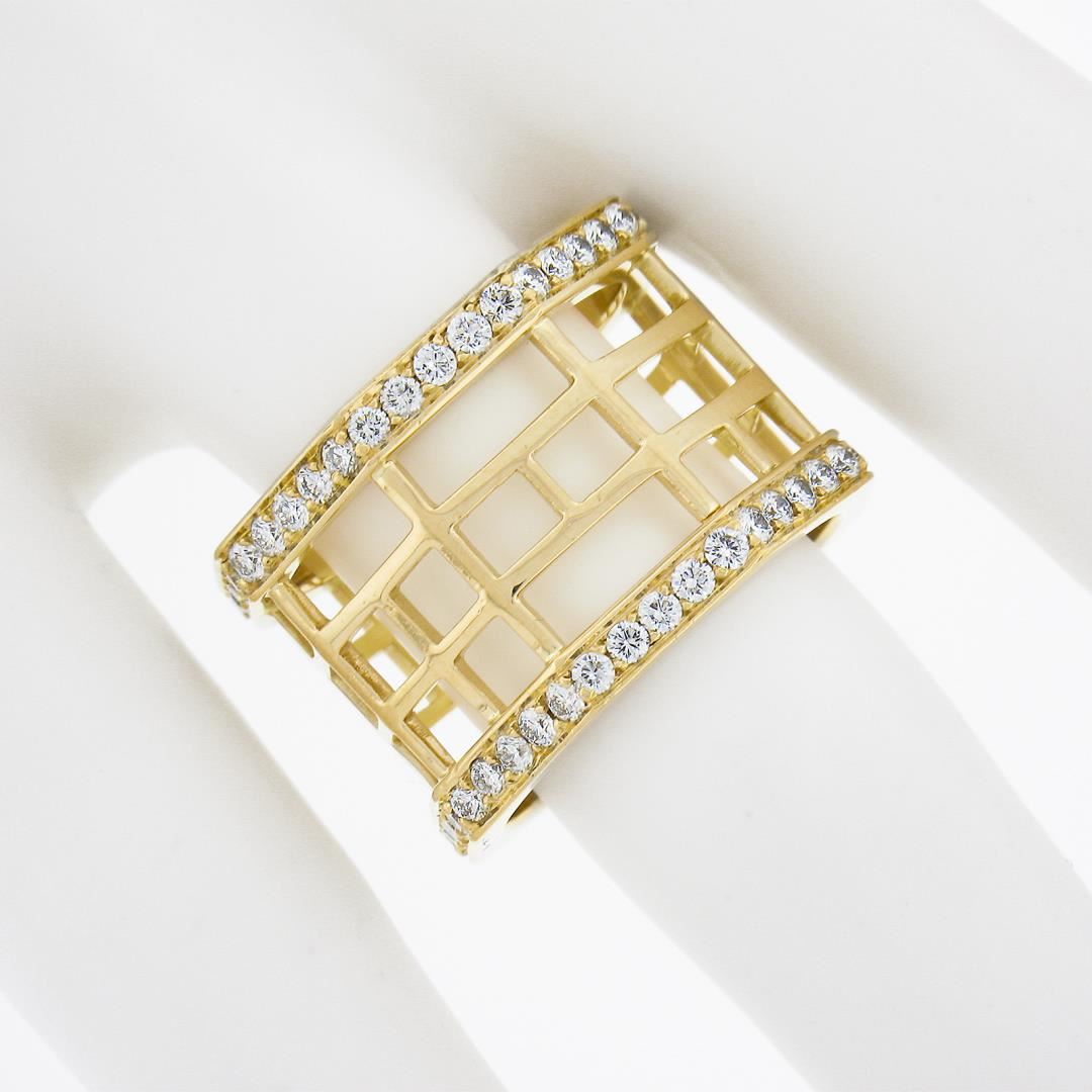 a solid 18k yellow gold wide band ring, with 80 round cut natural diamonds (F/G - VS1/VS2 ; 1.40ctw). The ring is size 6.5, weighs a total of 10.63 grams, and measures 15mm wide.
