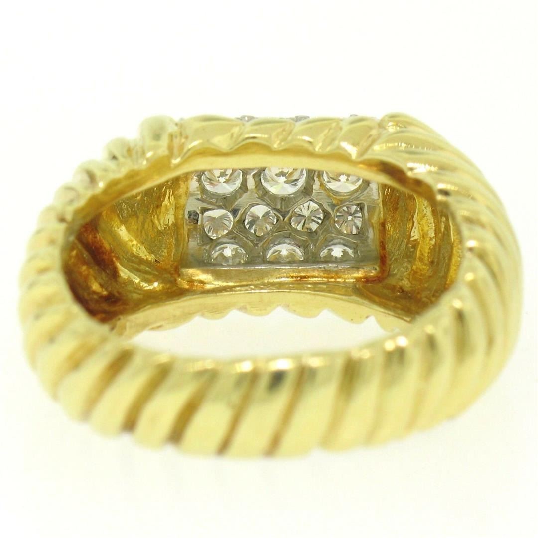One Estate 18k Yellow Gold Scalloped & Ribbed E VVS2 1.01ctw Pave Set Diamond Ring. Item Details: Material:  18K Solid Yellow Gold , Weight: 12.7 Grams , Stone:   (17) Natural Genuine Diamonds - Round Brilliant Cut - Pave Set - E/F Color - VVS2/VS1 Clarity - 1.01ctw (approx.), Size:  8.0, Width: 10.36mm, Height: 7.20mm rise off the finger, Condition:  Like New and ready to wear.