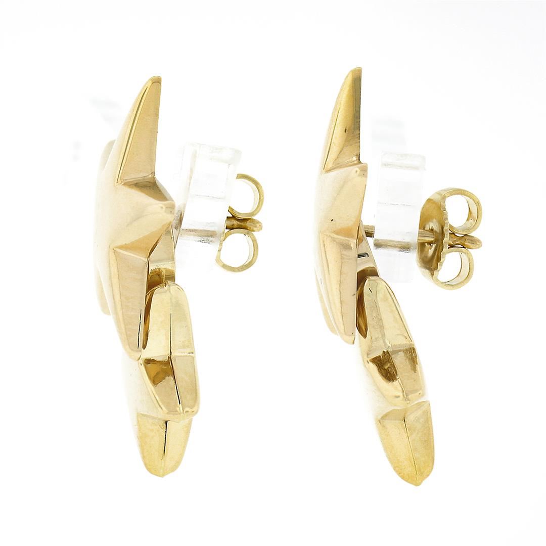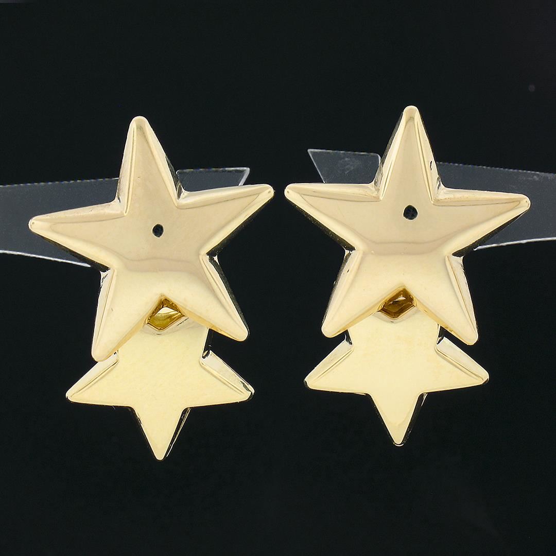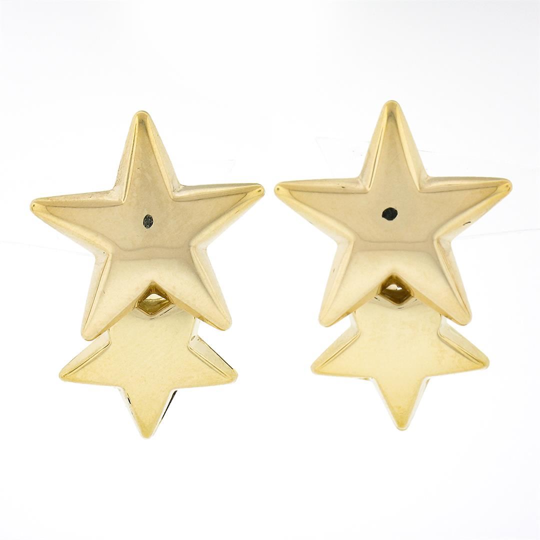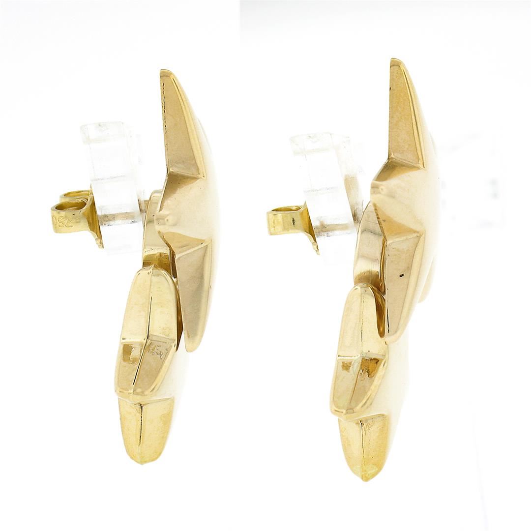 A solid 18k yellow gold pair of dual stat dangle earrings. The earrings measure approximately 28.9x15.3mm and weigh a total of 5.94 grams.