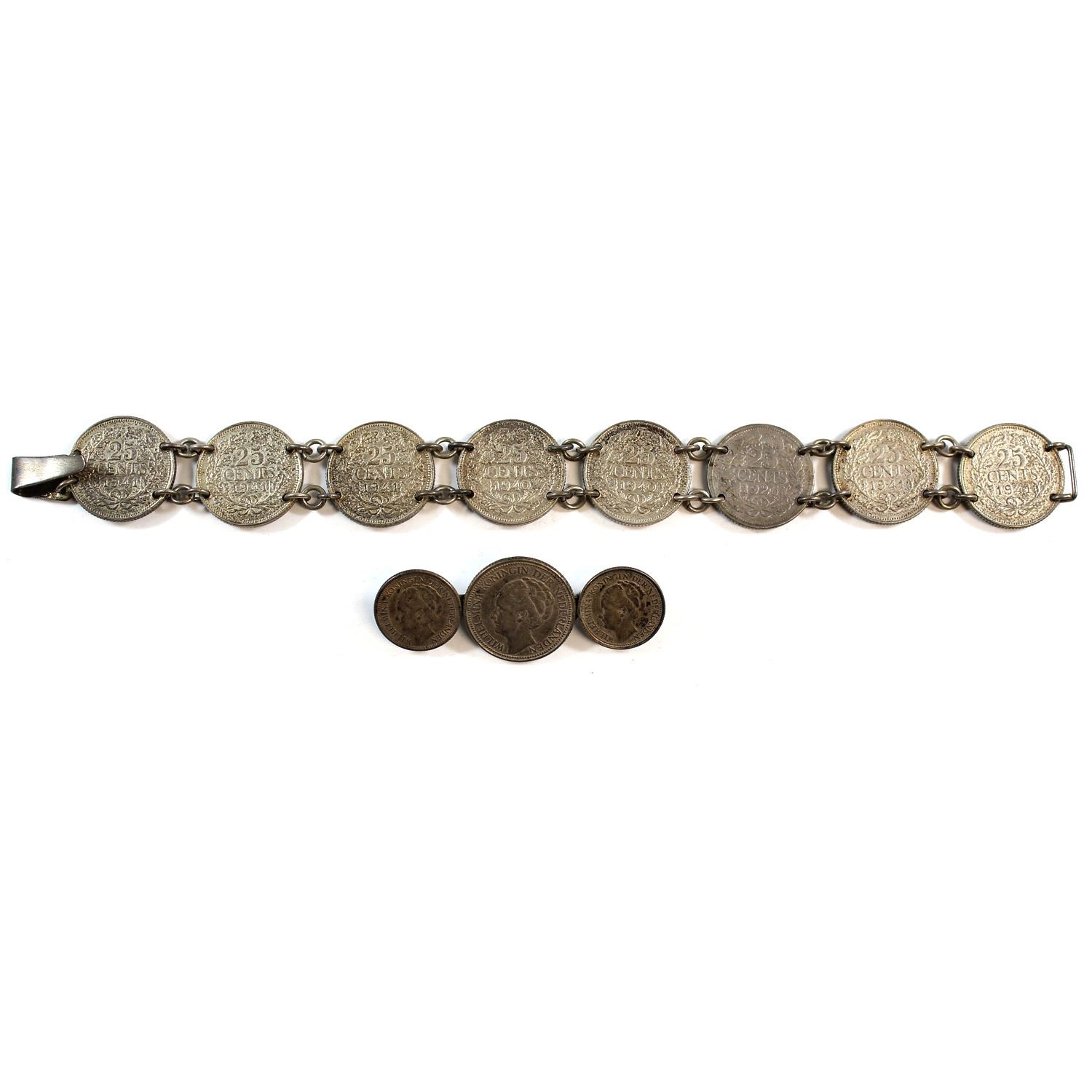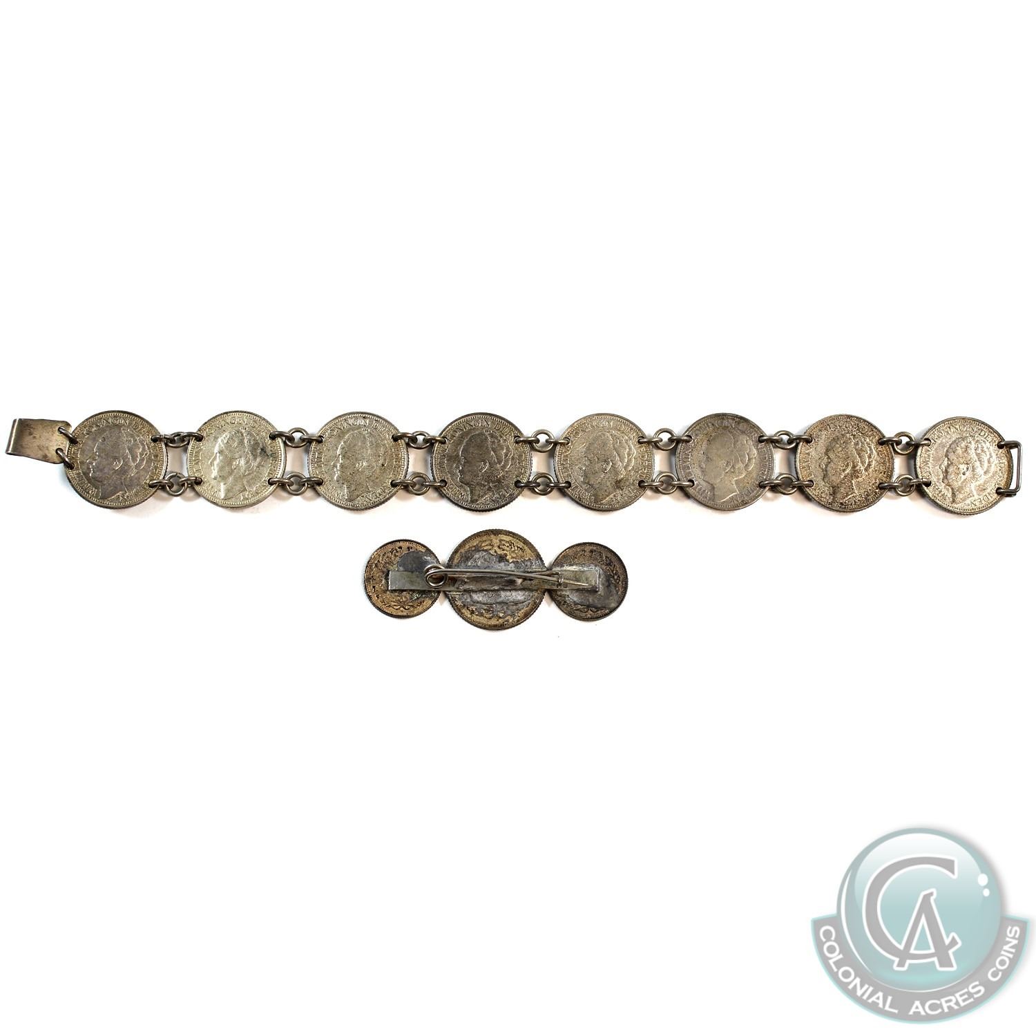 Estate 1926-1941 Netherlands 8-coin Bracelet & Netherlands 3-coin Brooch.  2pcs.