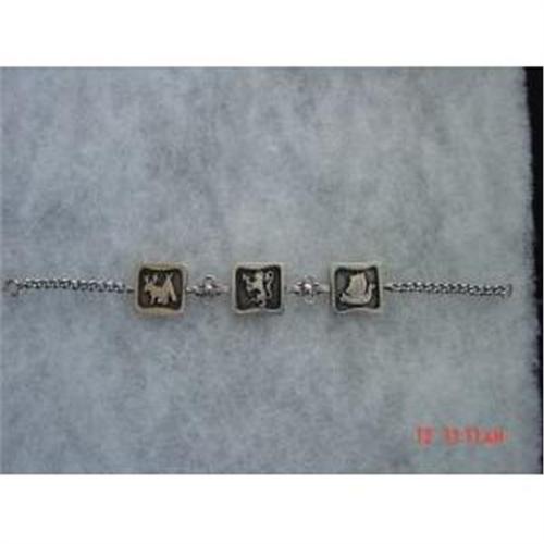 WOW look at this awesome vintage estate piece. This is signed GUSTERMAN STERLING DENVER SGn bracelet. The Gusterman company began around the 1950s and my guess is this is one of the first items, either 1950-1960s? There are 3 incredible individual sterling engraved links. The first is a moose and a tent! The second is a Lion with a crown and a ax in his hand, the third is a saidl boat with a dragon or something design on the fron t of the boat. Very detailed and fine workmanship! This lovely sterling signed bracelet will surely continue to appreciate in value!