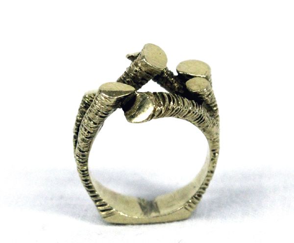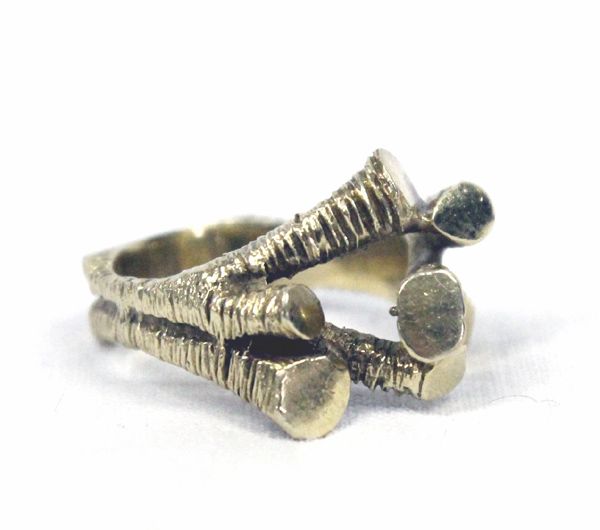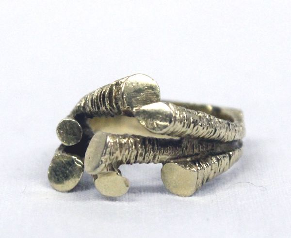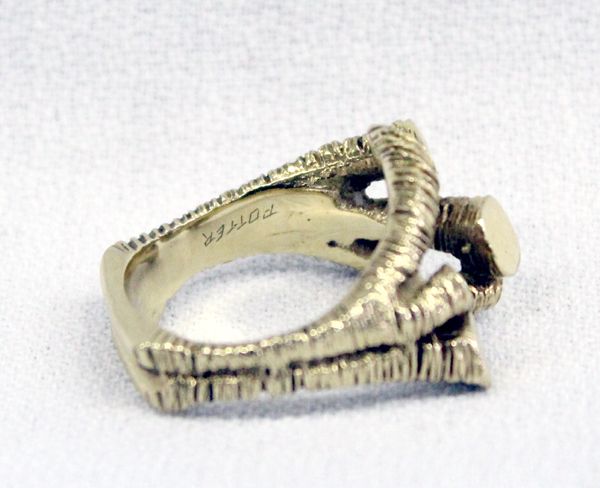 Estate 1970s 14Kt Gold Ring, Size 7.5, modernistic design, unusual shank design, signed Potter, 10.24g in total wt. Looks great on!