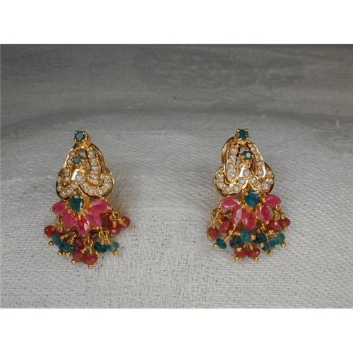 <tr><td>Title:Estate 24K 22K YG Ruby Emerald Pearl Earrings</td></tr>