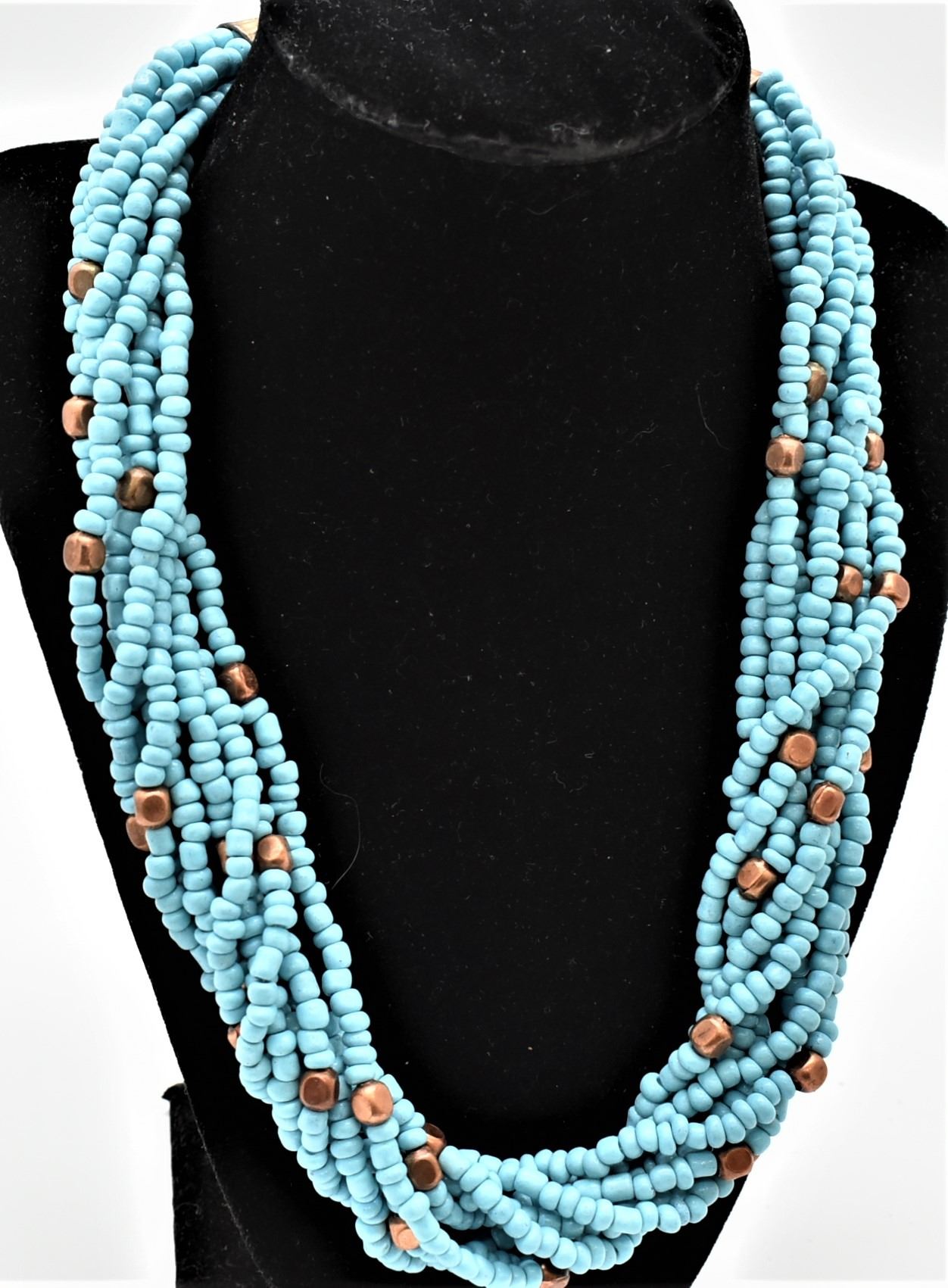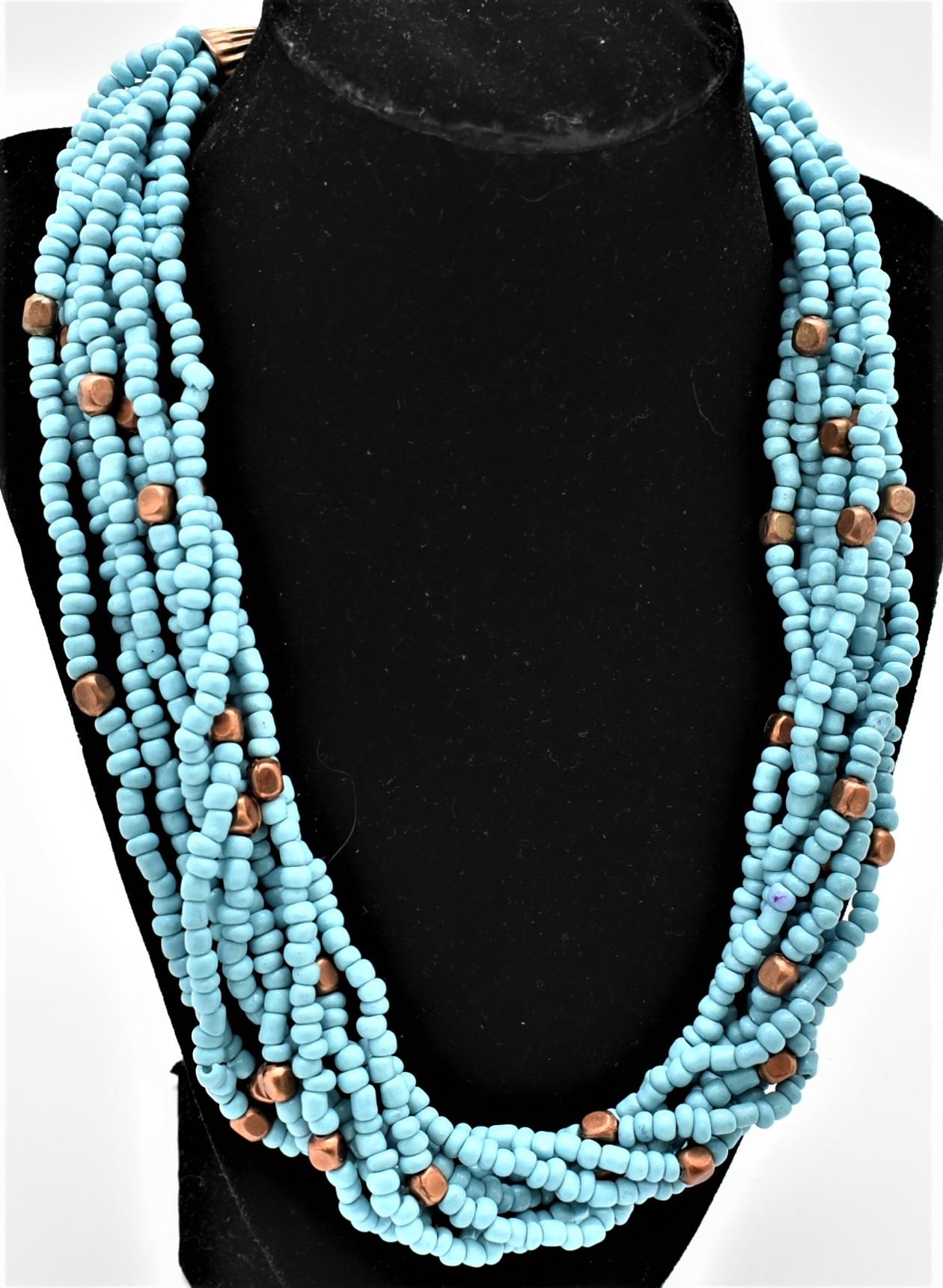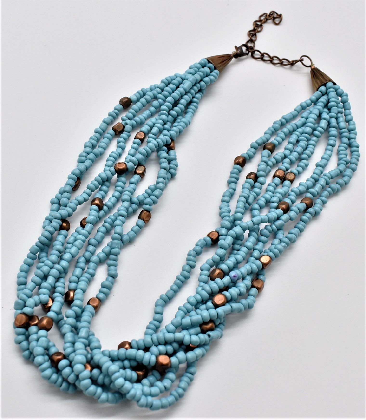Estate 8 Strand Copper & Turquoise Bead Necklace, measures 23''L end to end, has extender chain to shorten length