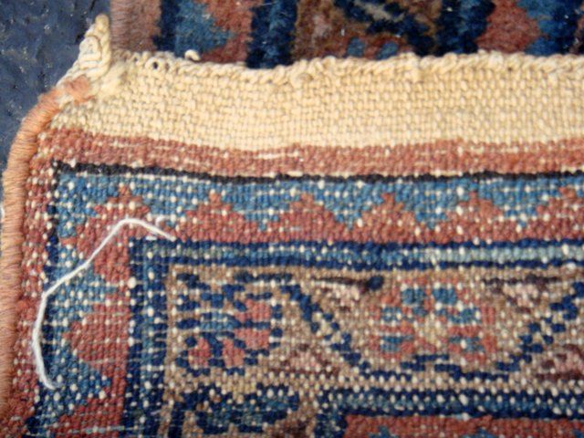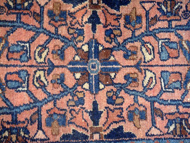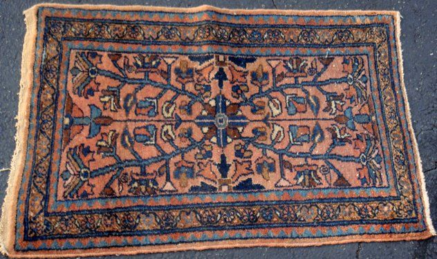 Estate Antique Persian Hamadan Hand Woven Rug with deep blue and rose colors. Very nice condition. Measures 23" x 36".