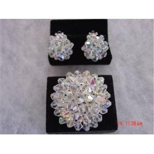 <tr><td>Title:Estate Aurora Borealis Crystal Set Brooch Earrings</td></tr>