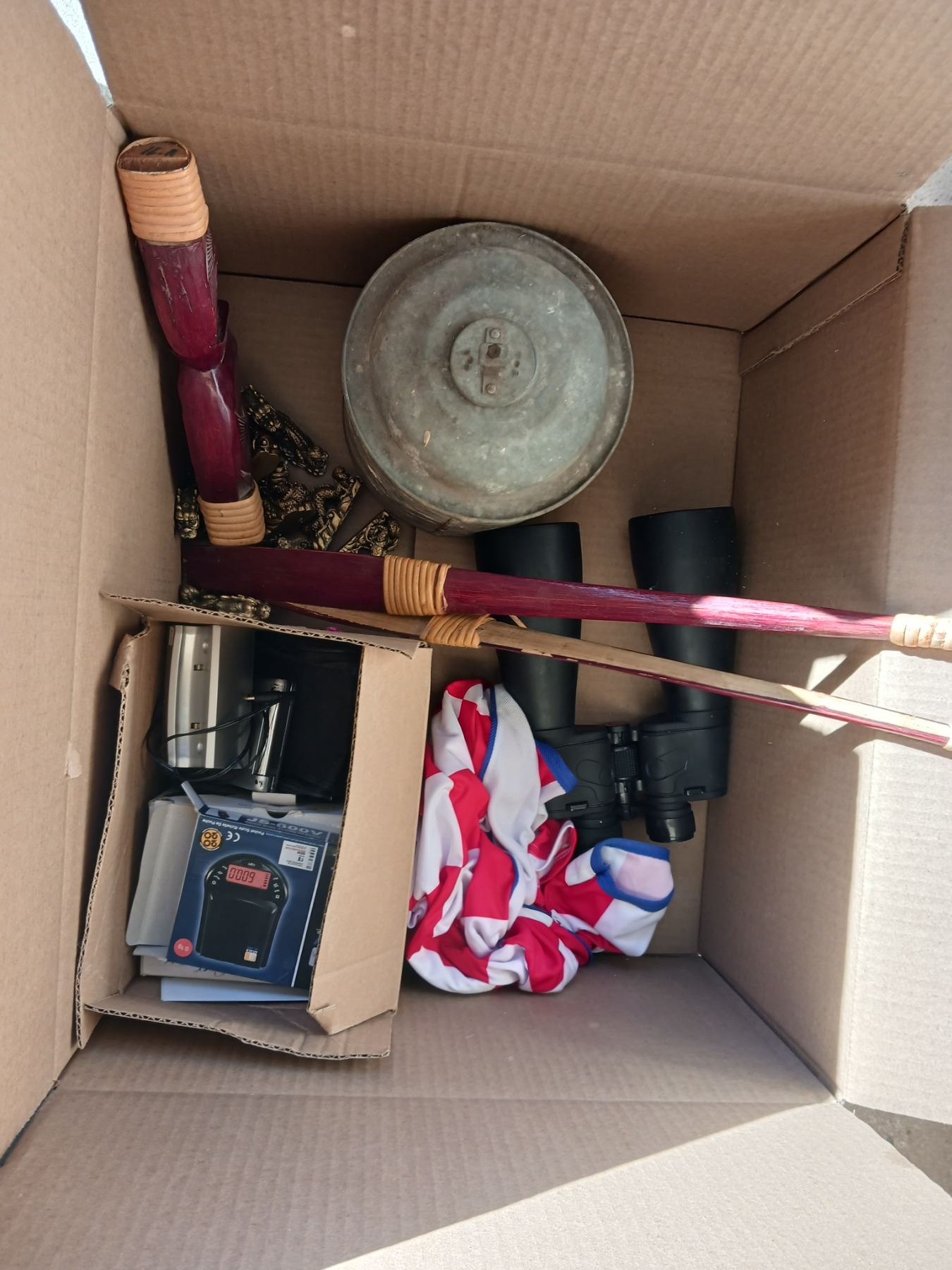 Estate Box of Goodies - Vintage Gas Can, Binoculars +++
