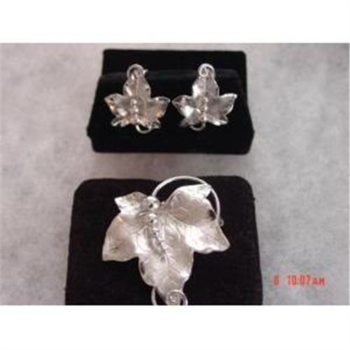 Here is a wonderful vintage signed C-A for CARL-ART Sterling set. There is a leaf brooch with tiny like little balls or grapes with the matching screwback style earrings. Excellent condition. These are from 1940-1960s!