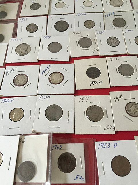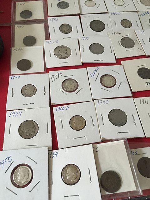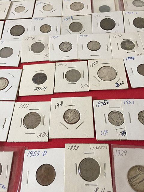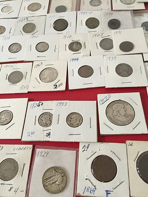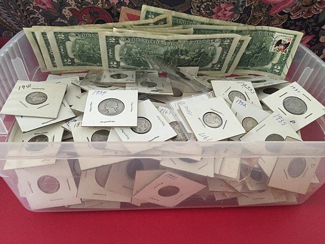 Huge colllection of mixed coins including silver, Indian head pennies, 2 cent piece, large cent, etc. plus $2 bill currencies.