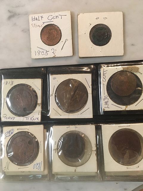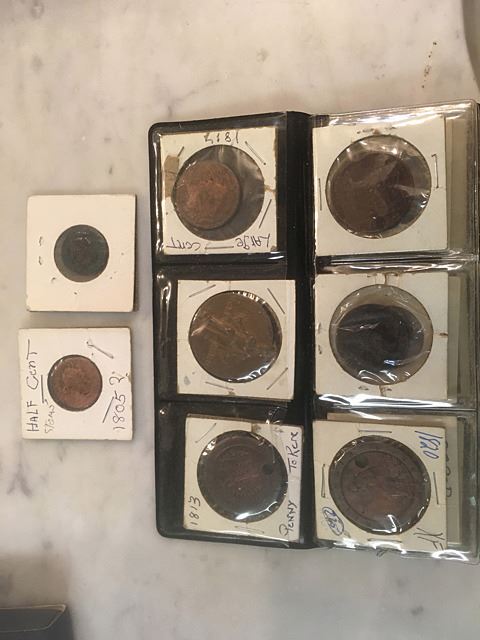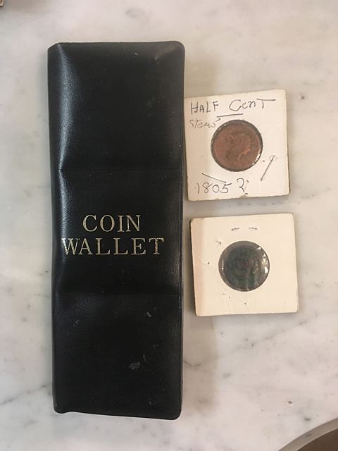 Estate Coin Collection includes 2805 Half Cent, large cents c. 1810-20, additional misc. coins in coin wallet.