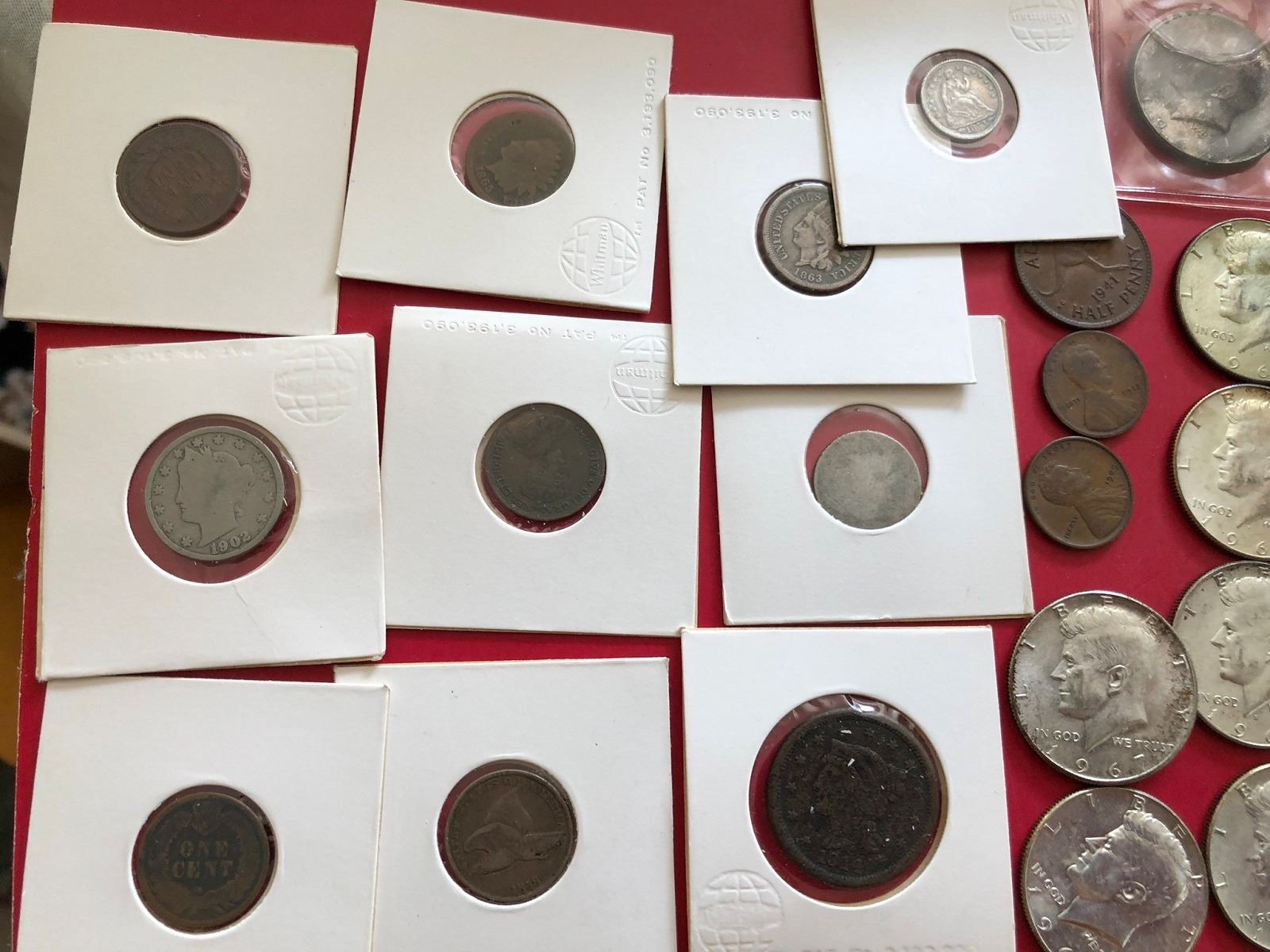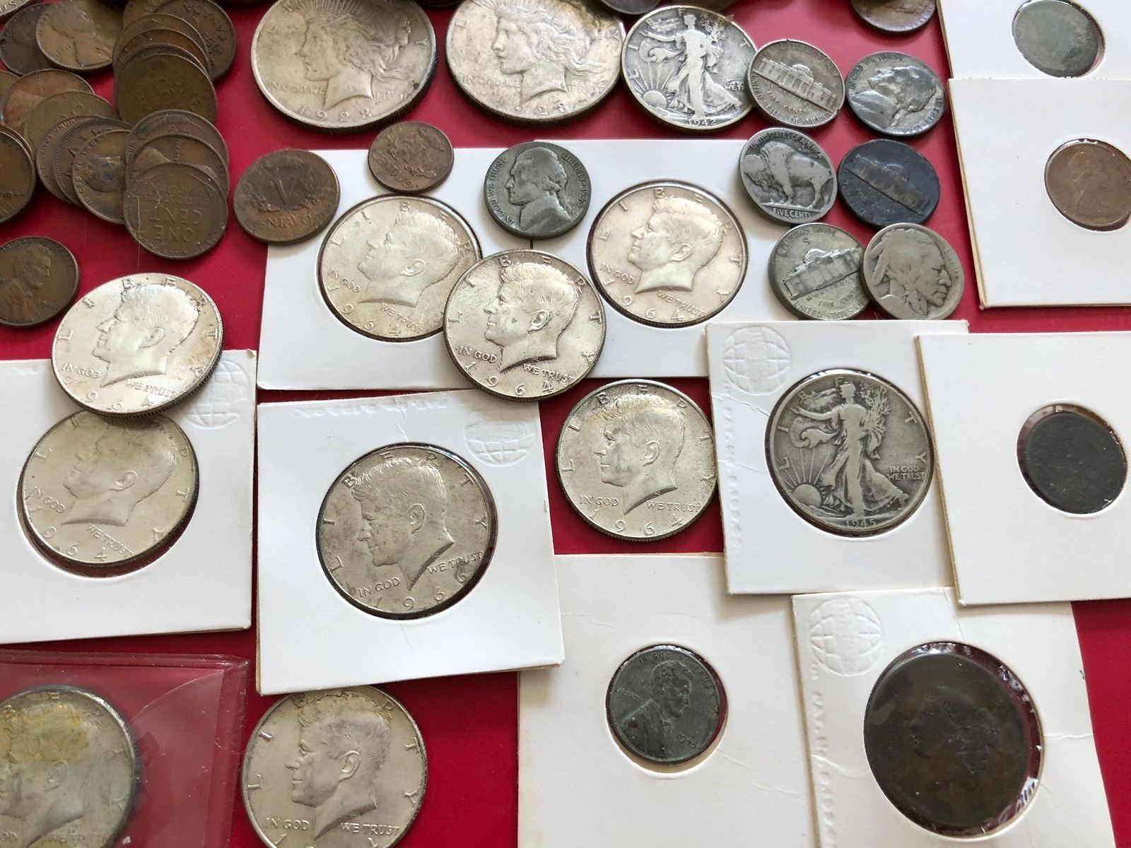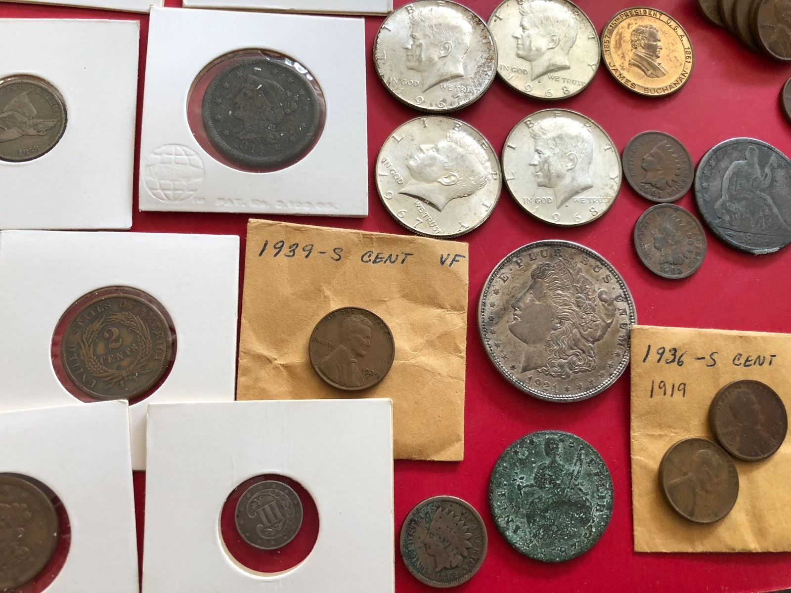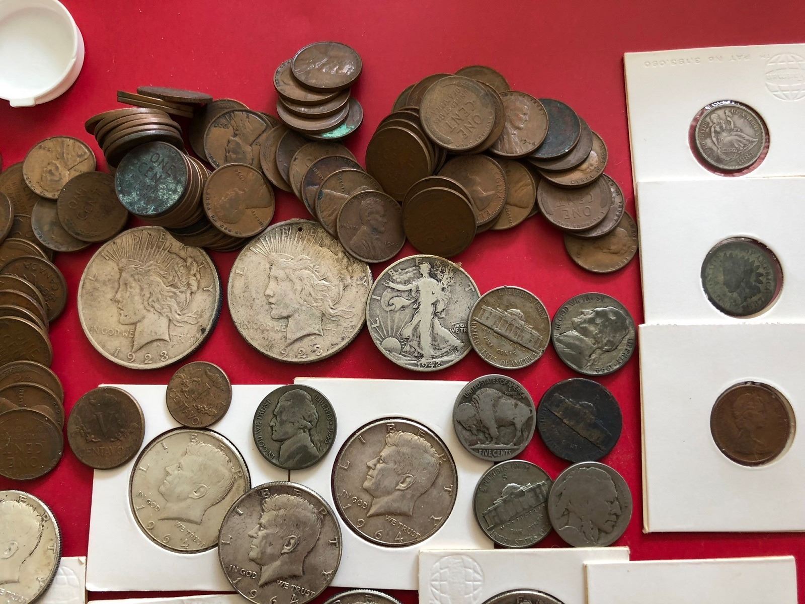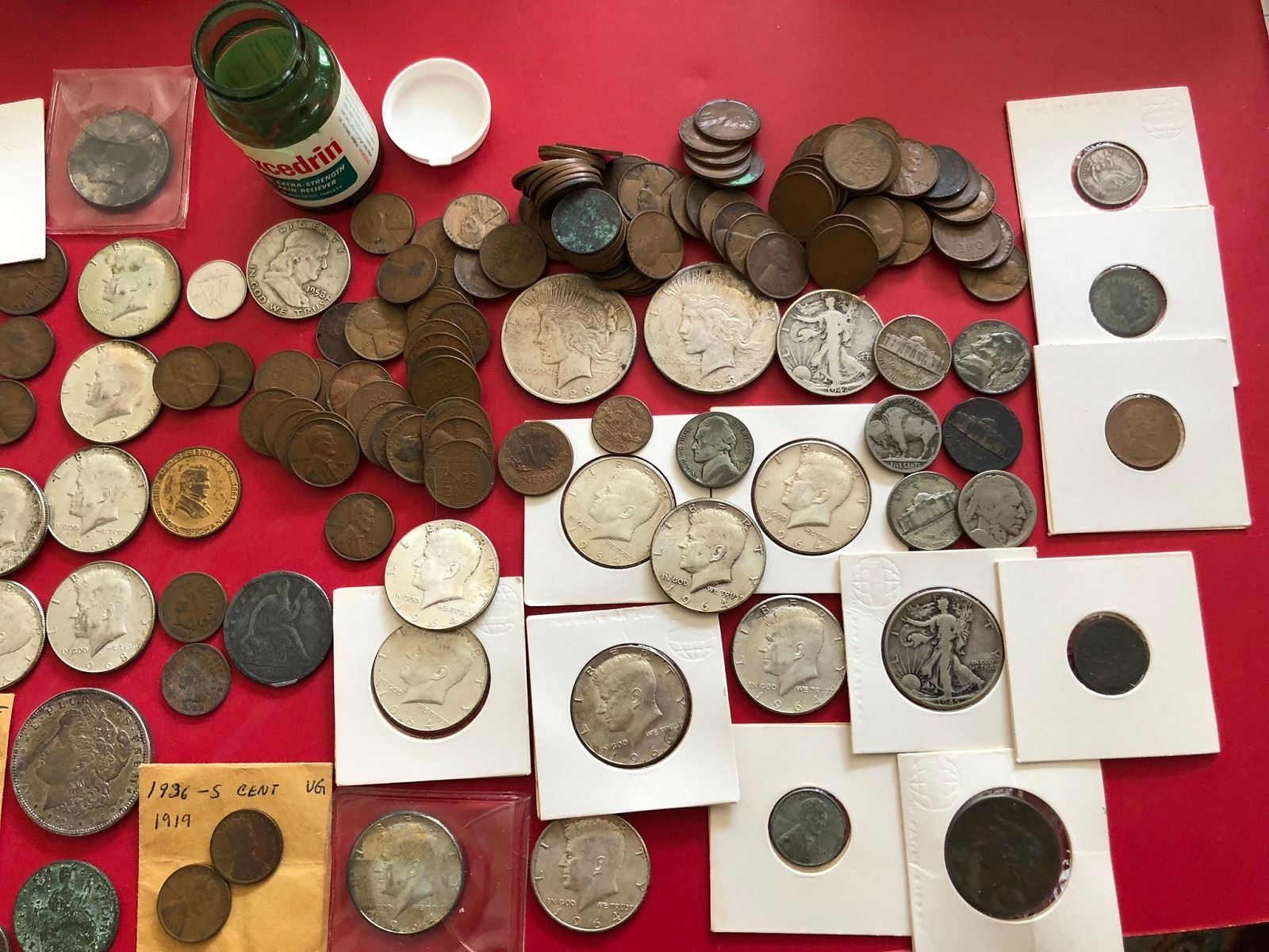 Estate coin lot includes silver and copper coins, Indian Heads, half dollars, silver dollars, and more! This lot is being sold as found at the estate, no one has gone through them in years! (RM)