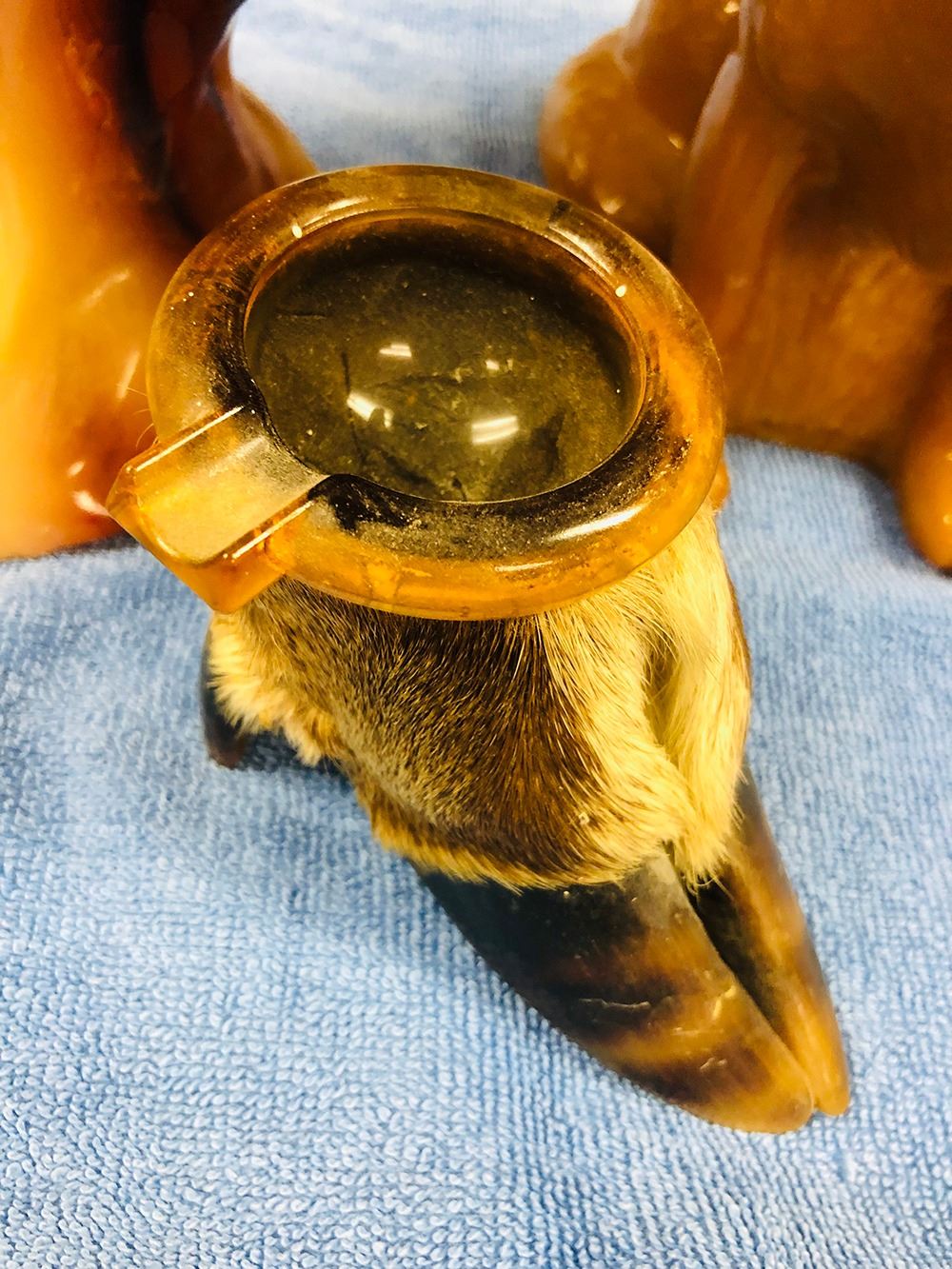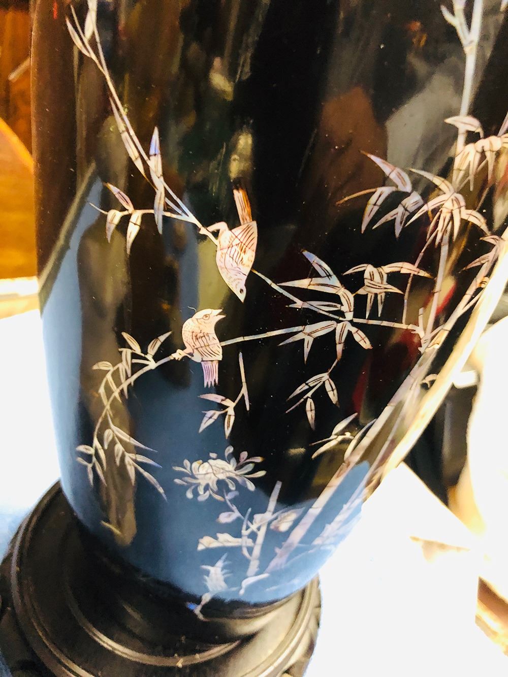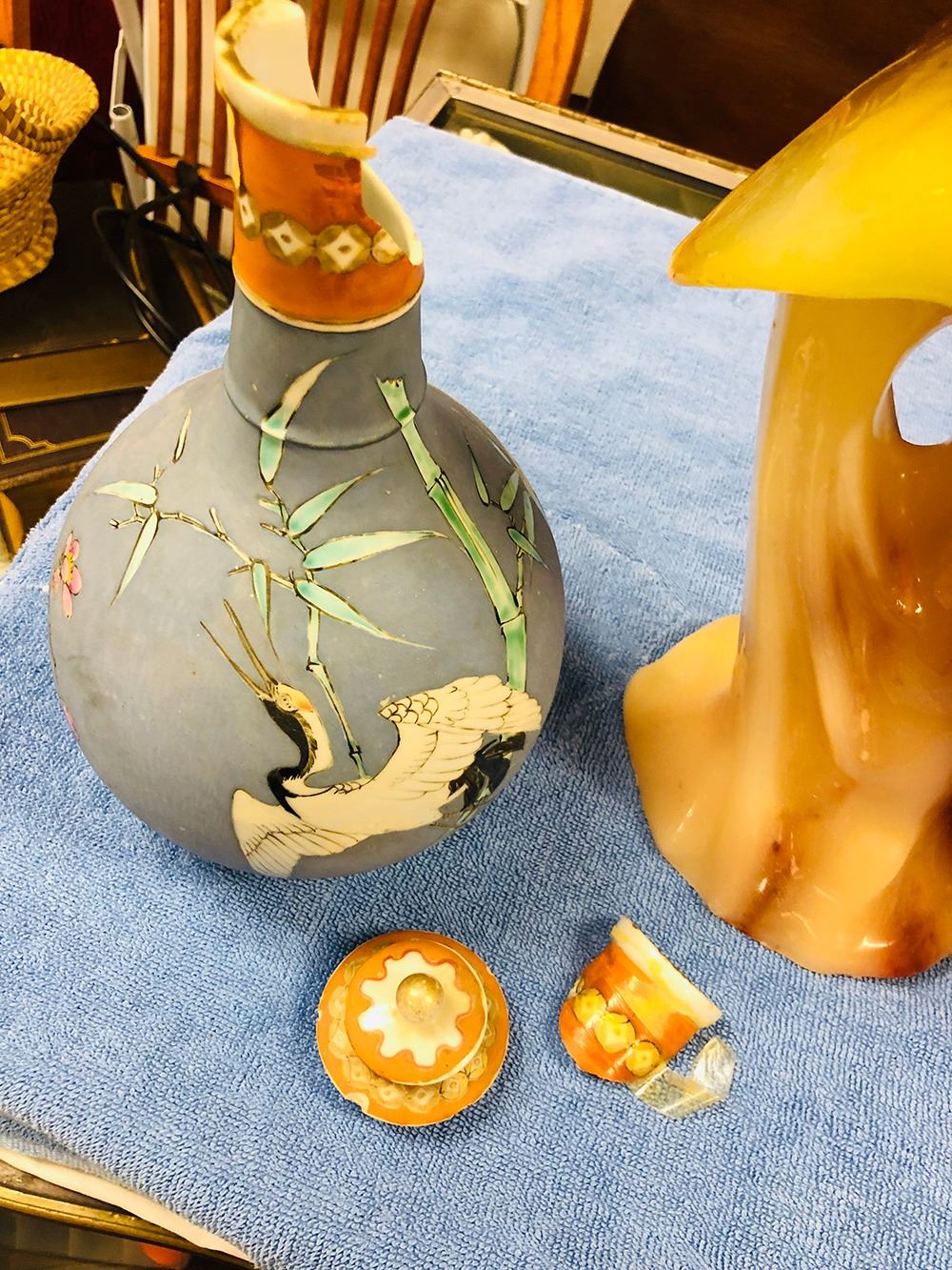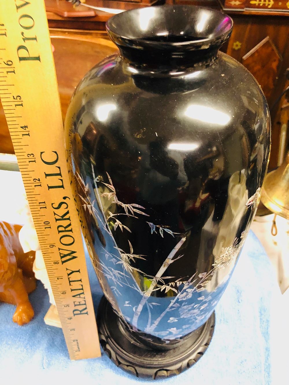 Estate Collectibles lot includes Asian vessel, tall inlayed vase, bird and dog candle, and hoof ashtray