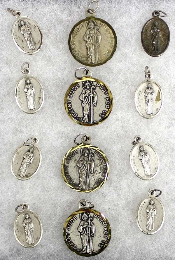Estate Collection of 12 St. Jude Metal Pendants, largest measures 2''D
