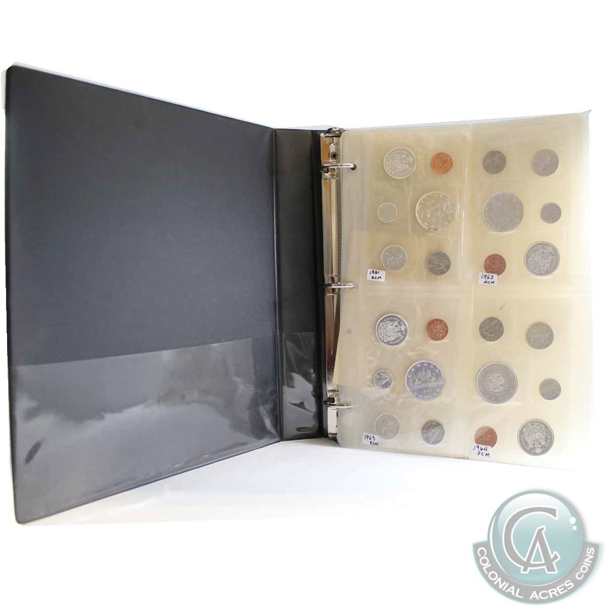 Estate Collection of 1961-1998 Canada Proof-Like Uncirculated Sets in display binder. You will receive the following dates: 1961, 1962, 1963, 1964, 1965 Blunt, 1965 Pointed, 1966, 1967, 1968, 1970, 1973,2x 1977 LWL, 1978 Square, 1980, 1984, 1985, 1988 RCM, 1993, 1995 and 1998. 21 Sets