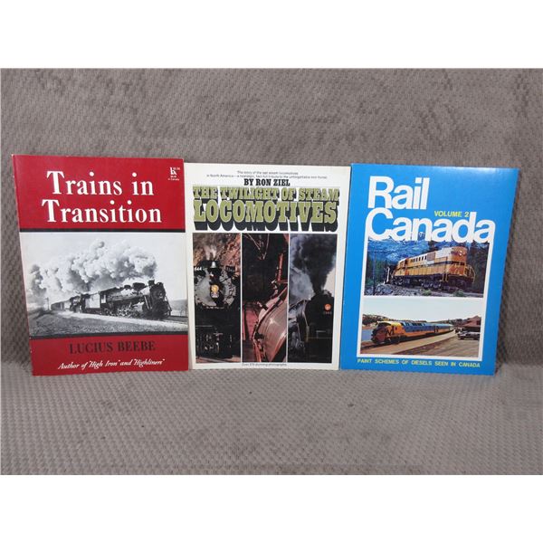 3 - Train Books/Magazines - Trains in Transition by Lucius Beebe, Rail Canada #2, The Twilight of Steam Locomotives by Ron Ziel