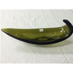 Hand Blown Green Art Glass Banana Bowl