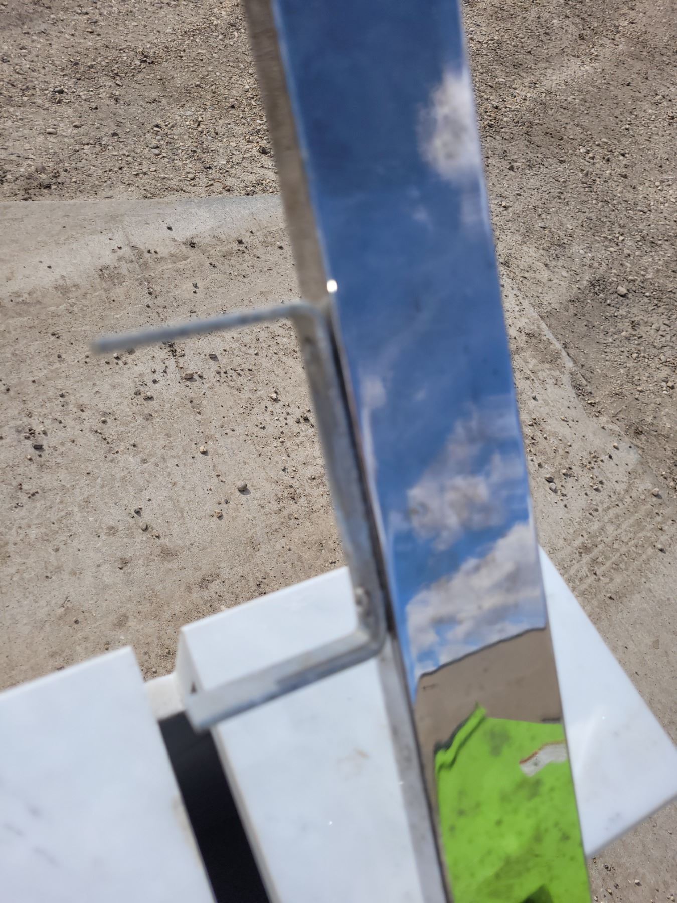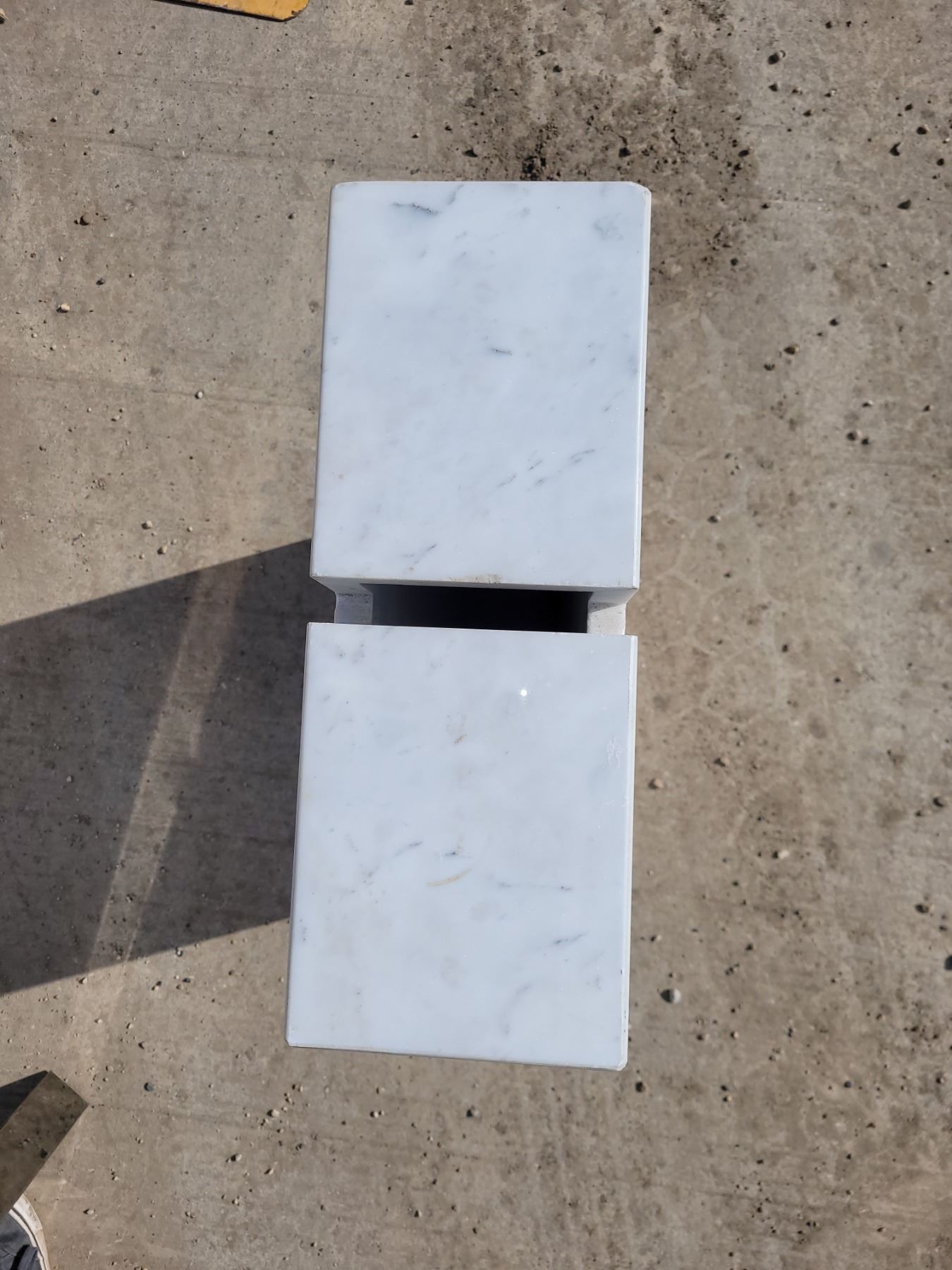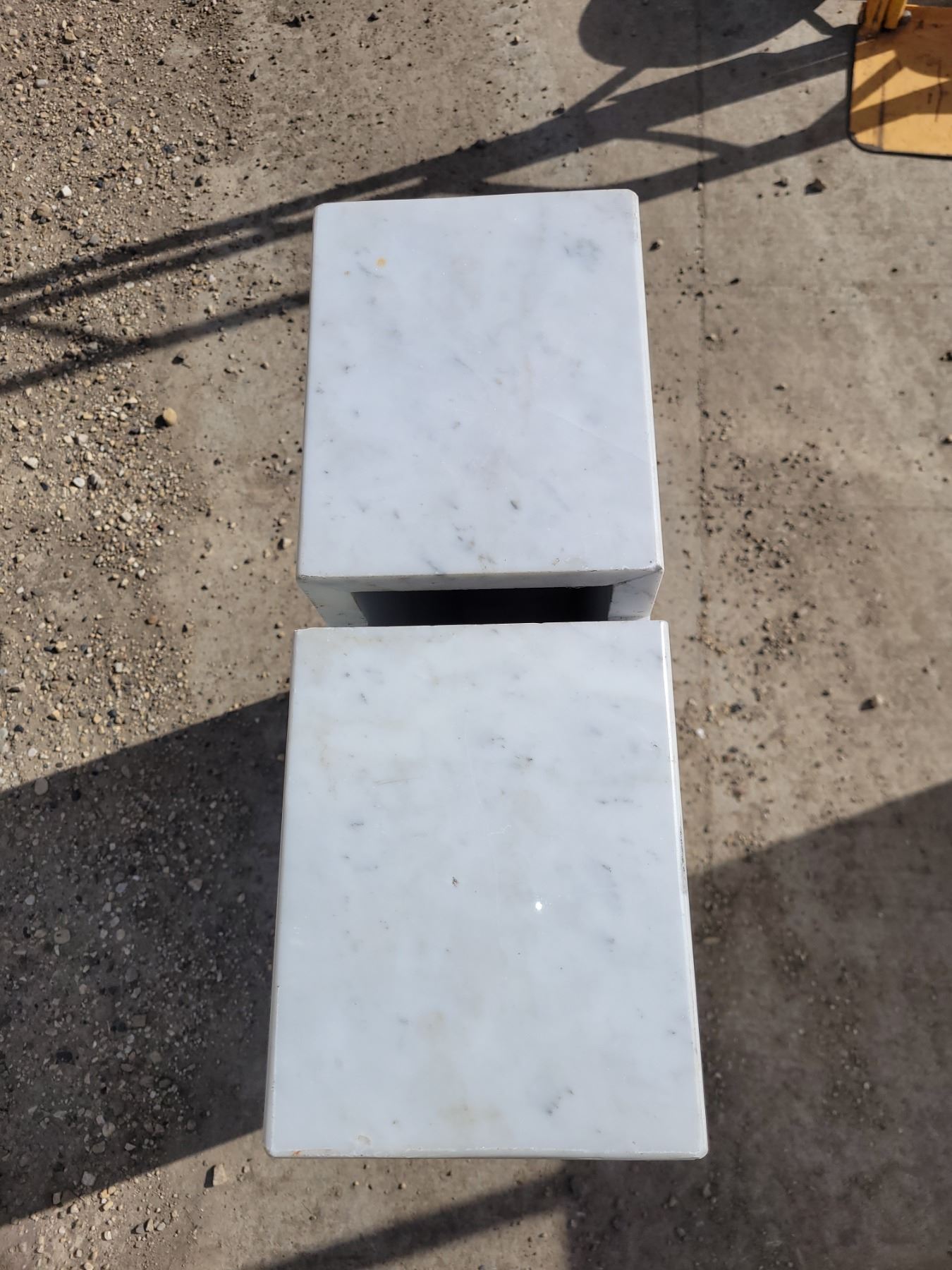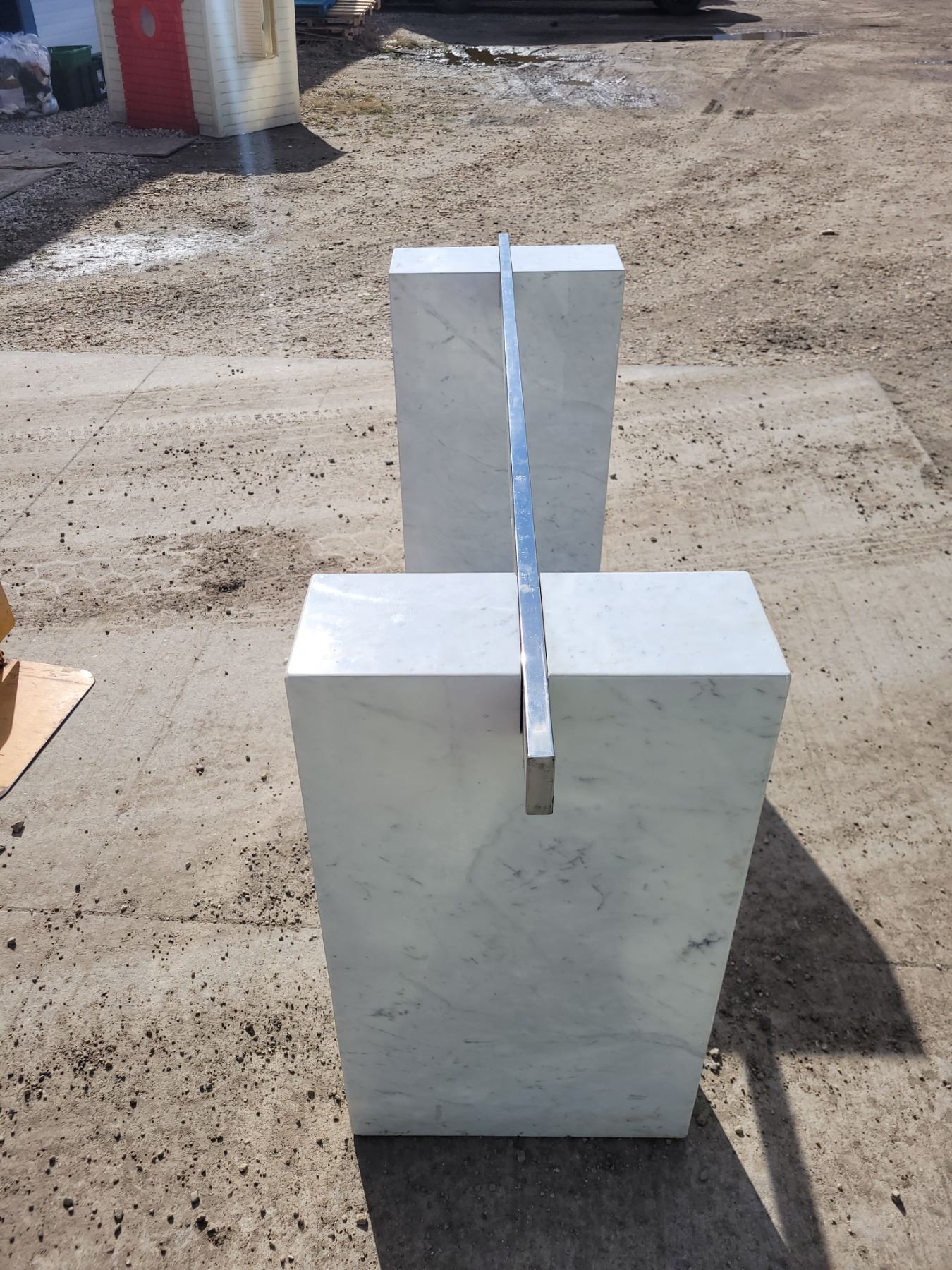 Estate Contemporary Marble Base Glass Kitchen Table. Beautiful table. Glass will need a cleaning. All 3 main components are extremely heavy. This cannot be shipped. You will need to bring help to load this item. No tools required, the metal bar just rests inside the slots. One end of the bar looks like it is missing a piece, does not compromise the utility of this table. It is quite large, the glass is approx 6 feet or more.