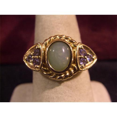 This estate ring is such a beautiful and unique combination of approximately 2.12 cts of jade and tanzanite. The ring weighs 5.5 grams and is currently a size 10. If you bid on this piece and do not win it, please visit my online store by clicking ?view this dealers other items? to see if it is still available for direct sale or offers. Need Ring Sizing? Ask me about wholesale sizing prices. Personal shopping requests can be sent to ?email dealer?. Help make adoption a reality! Add a $4.00 ?Orphans R Gems? ?Support Adoption? blue silicone bracelet to your order or visit my non-profit Orphans R Gems website.