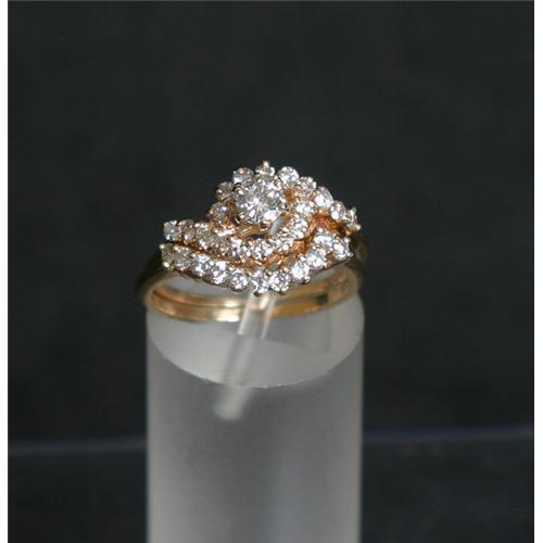 <tr><td>Title:Estate Diamond Solitaire Wedding Set gold ring</td></tr>
