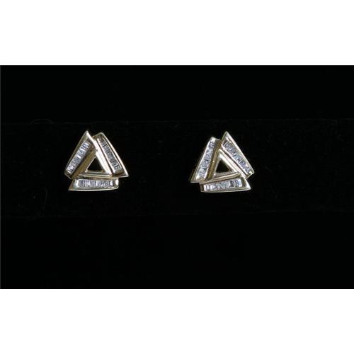 Many of you know me from my five years of national jewelry television shows, Estate Jewelry with Sam and Lisa and Jewelry and Collectables with Lisa. Now I am honored to present these beautiful antique and estate finds to you through Go Antiques. Here is a georgeous pair of diamond earrings set in 14K yellow gold. There are 24 fancy cut baguette diamonds in each earring for approx .5ctw of gems. The trillion-style earrings are .5" per side and weigh 3 grams. If you bid on this piece and do not win it, please visit my online store by clicking ?view this dealers other items? to see if it is still available for direct sale or offers. Personal shopping requests can be sent to ?email dealer?. Help make adoption a reality! Add a $4.00 ?Orphans R Gems? ?Support Adoption? blue silicone bracelet to your order or visit my non-profit Orphans R Gems website.